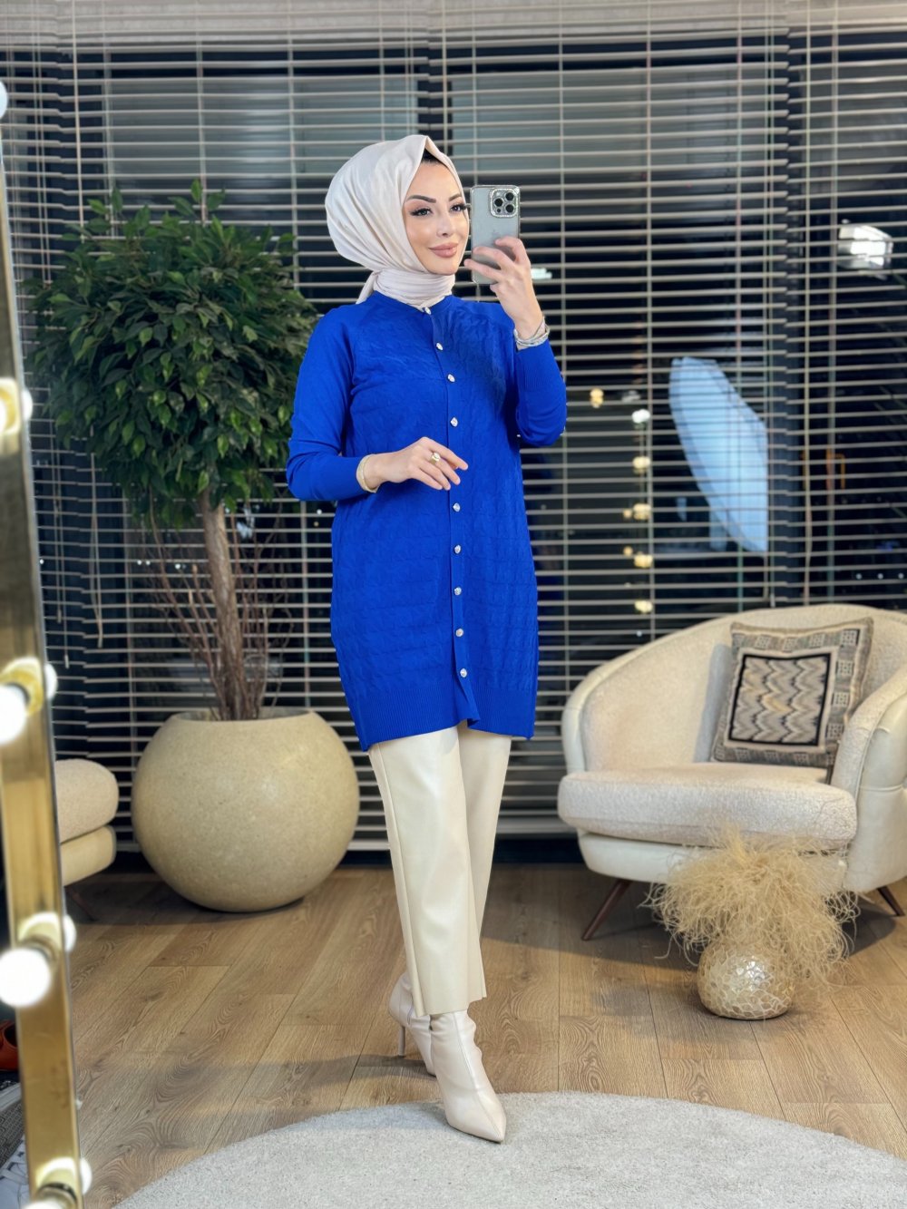 25K1111 Kazayağı Desen Hırka Saks