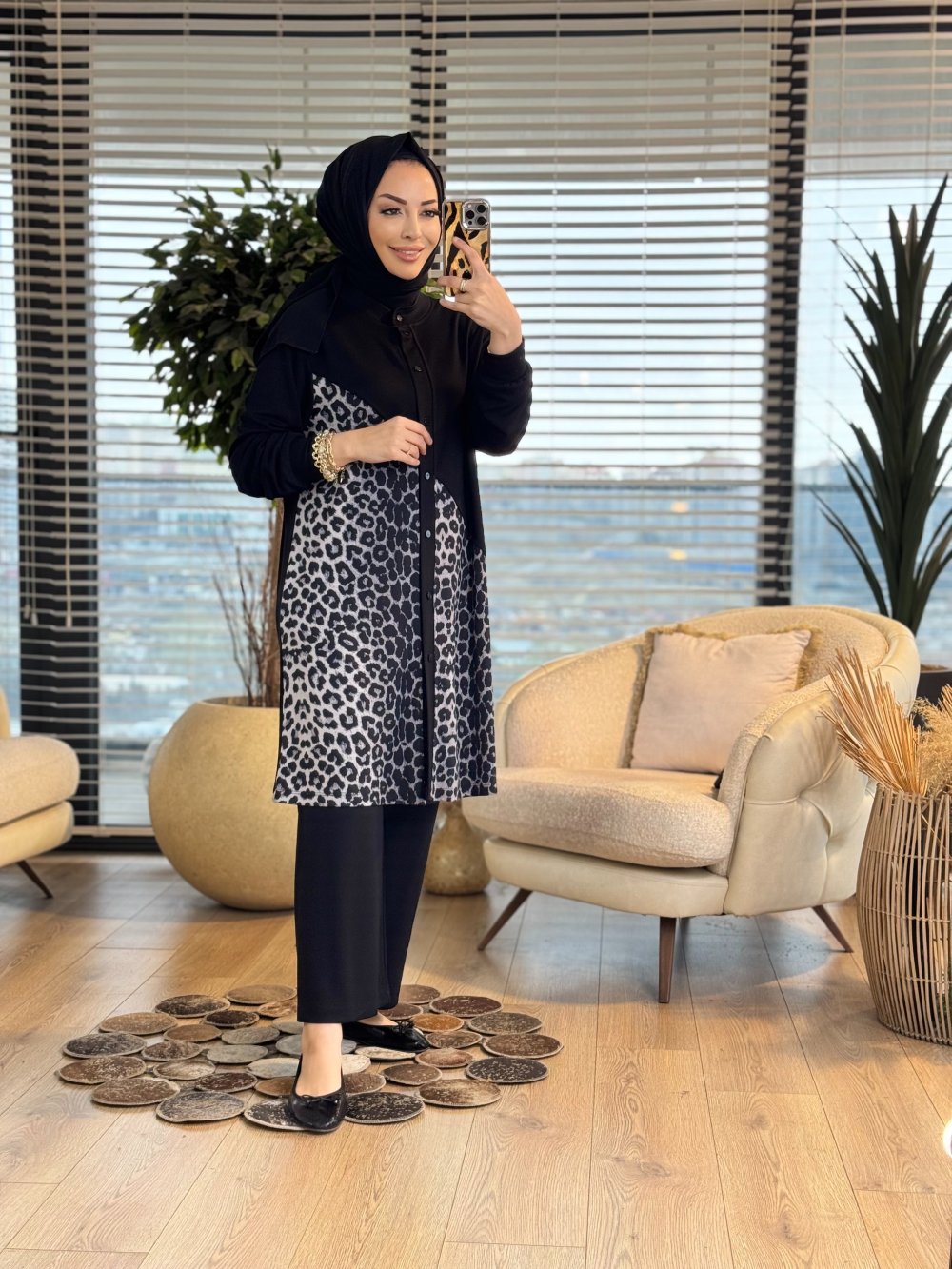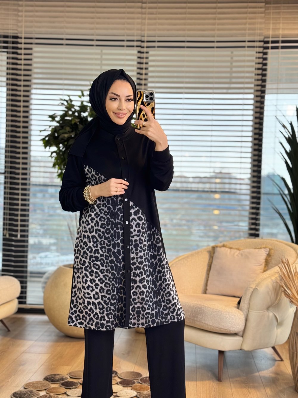26119 Esra Leopar Takım Siyah Kahve