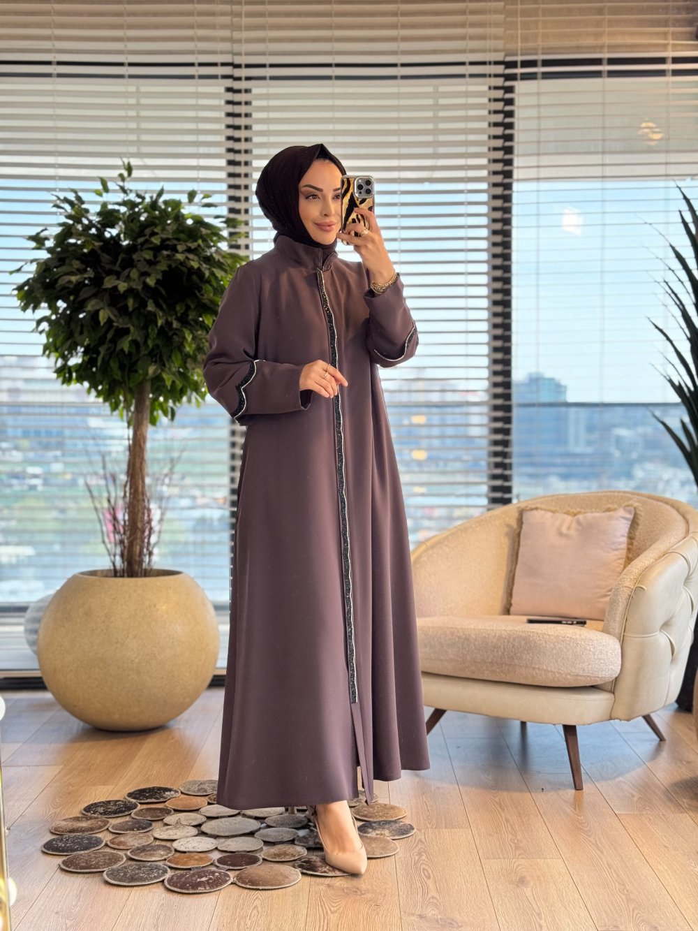 2613 Çift Kollu Taşlı Pardesü Kahve