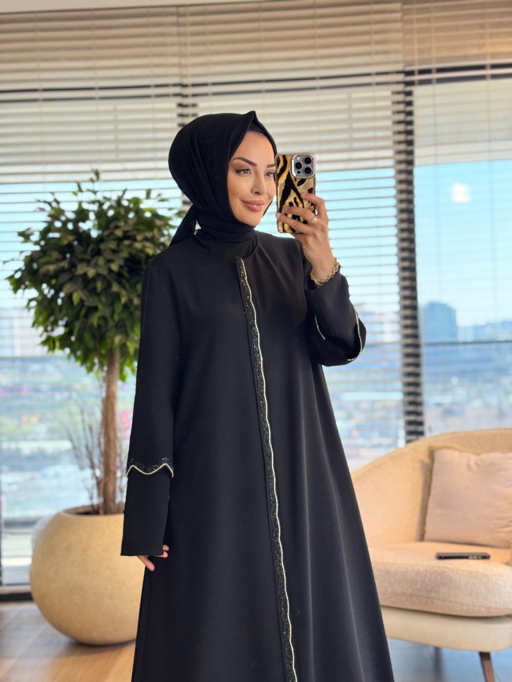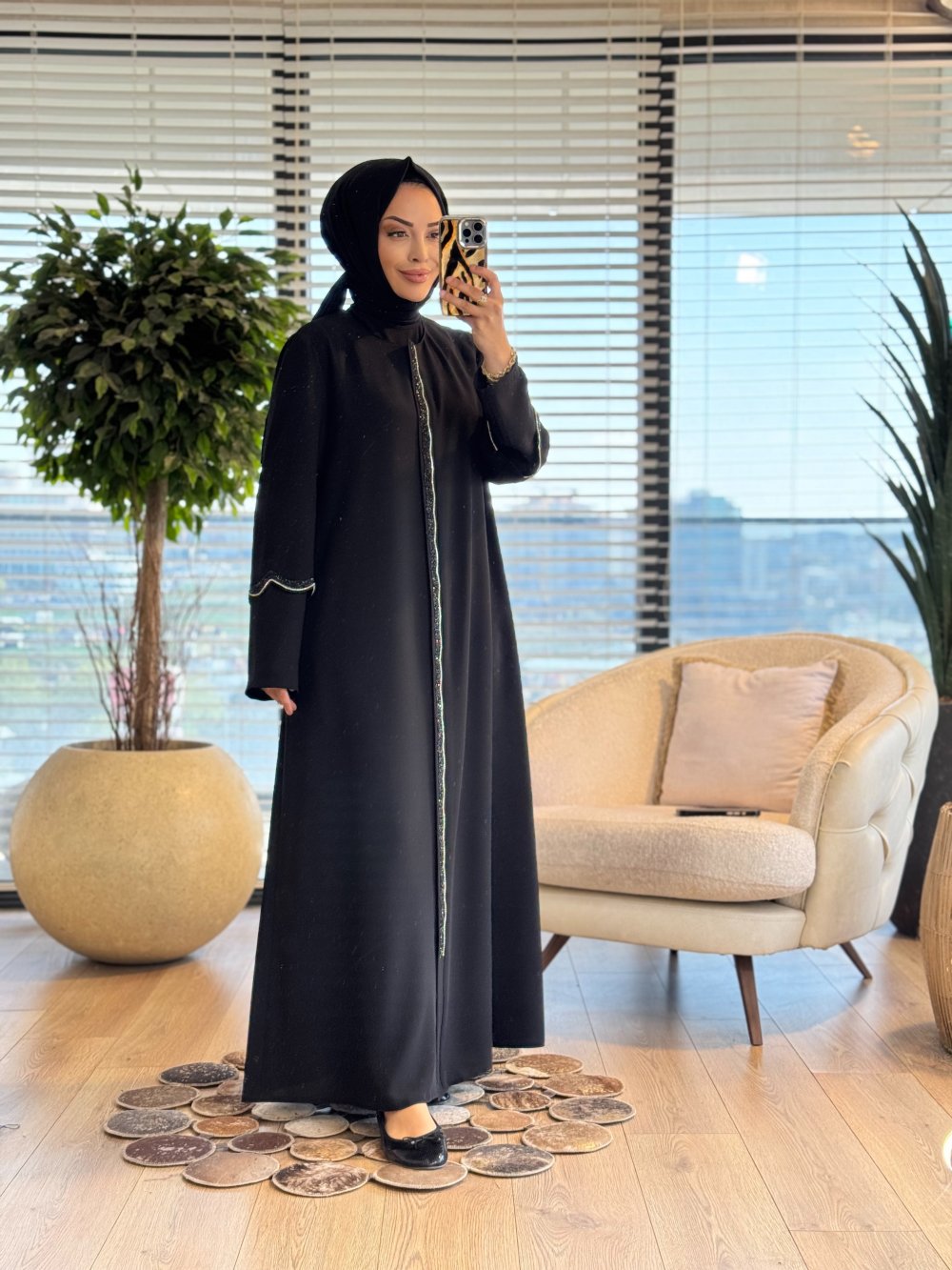 2613 Çift Kollu Taşlı Pardesü Siyah