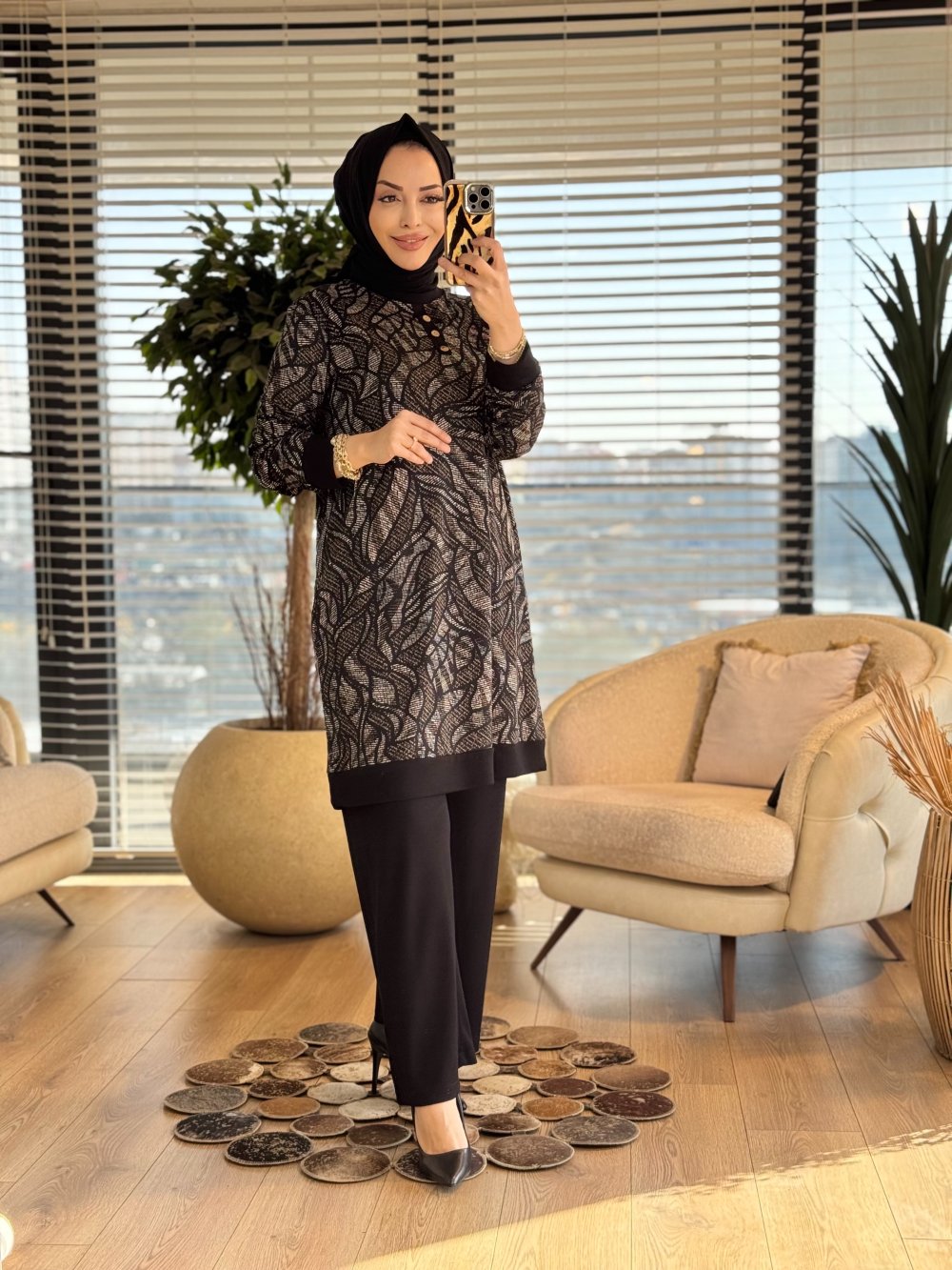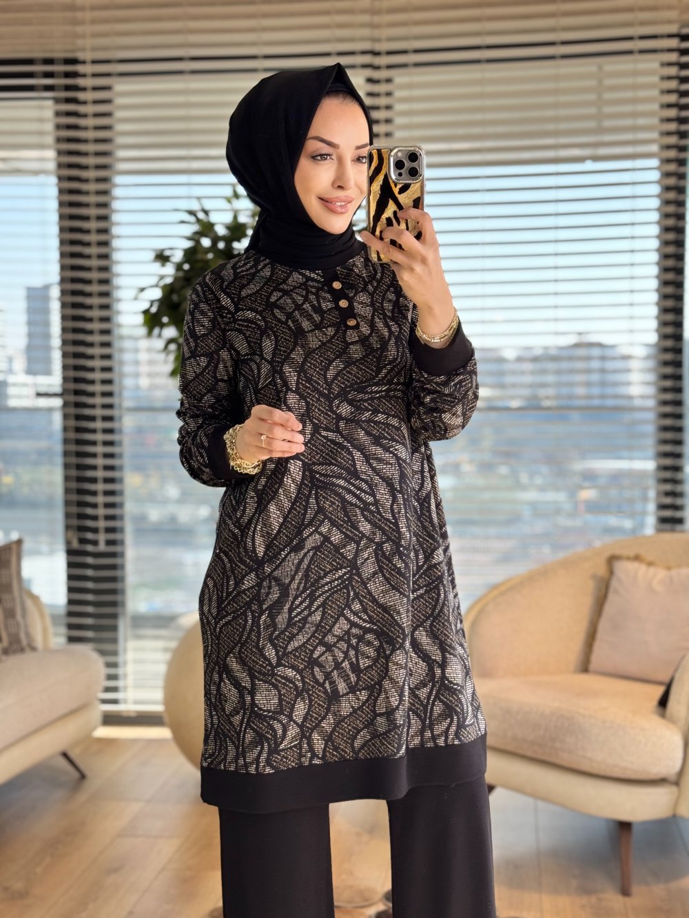 26135 Üstü Desenli Takım Siyah