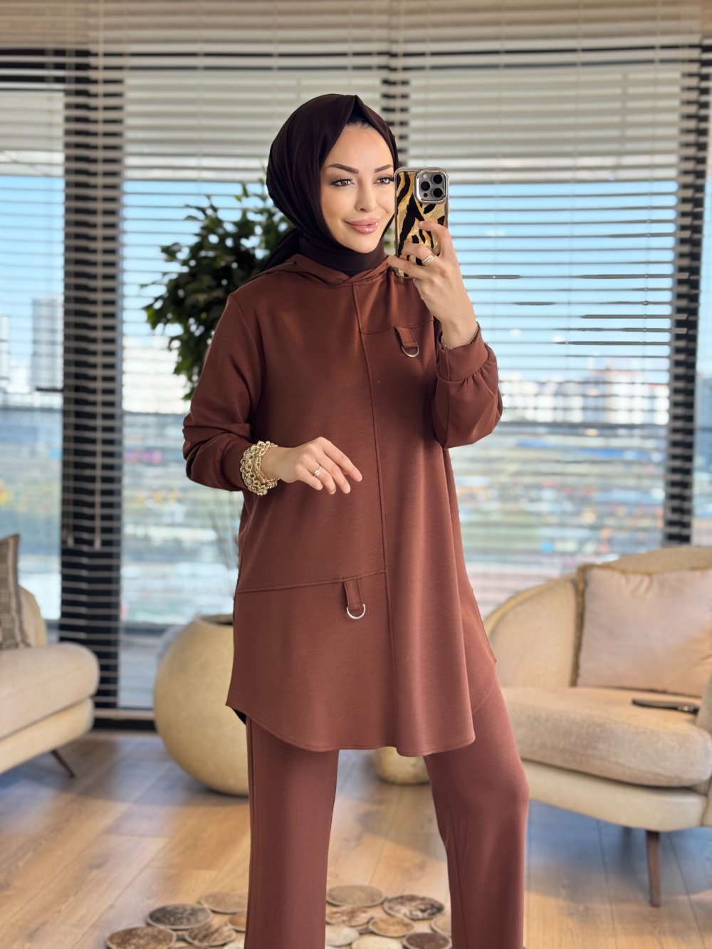 26605 Efsun Kapşonlu Oshyo Takım Kahve
