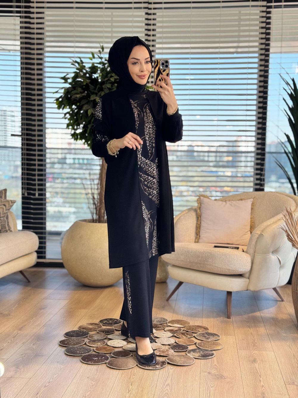 26610 Ege İkili Takım Siyah Desenli