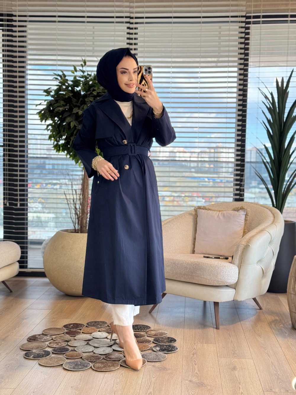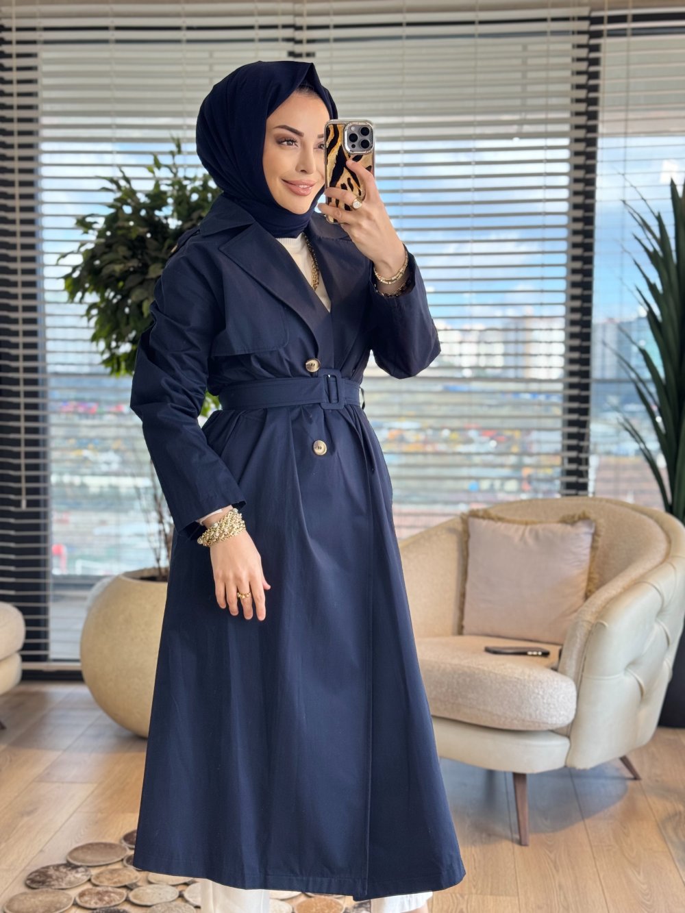 26YT706 Dört Düğme Kemerli Trenç Lacivert