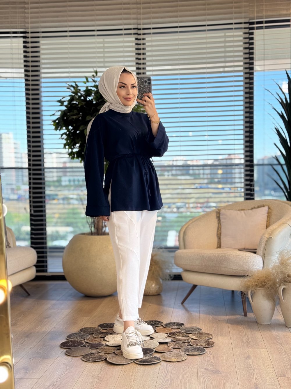 2755 Dikiş Detaylı Yırtmaçlı Sweat Lacivert