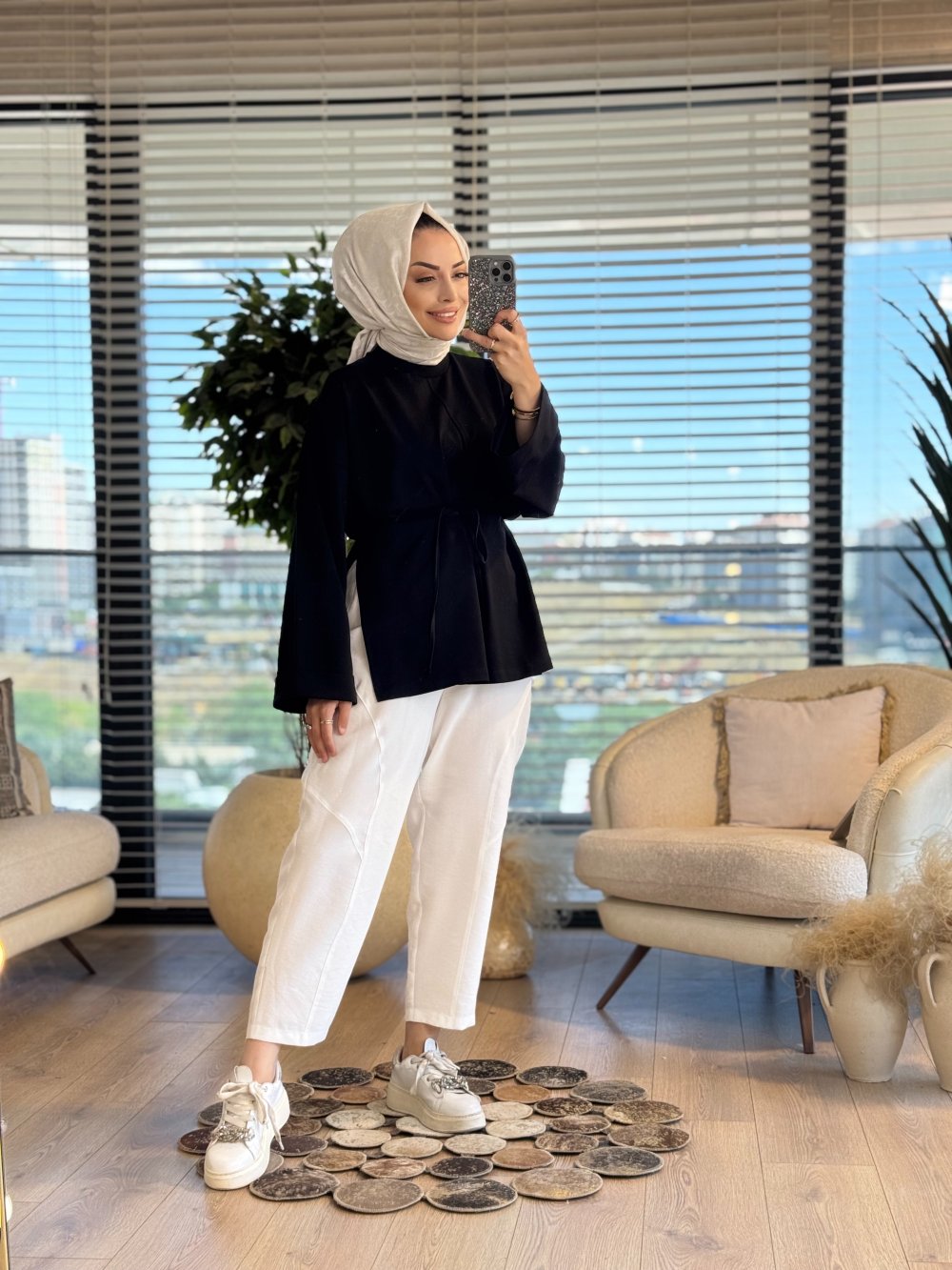 2755 Dikiş Detaylı Yırtmaçlı Sweat Siyah