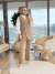 32523 Palmiye Ve Güneş Baskılı Takım Bej
