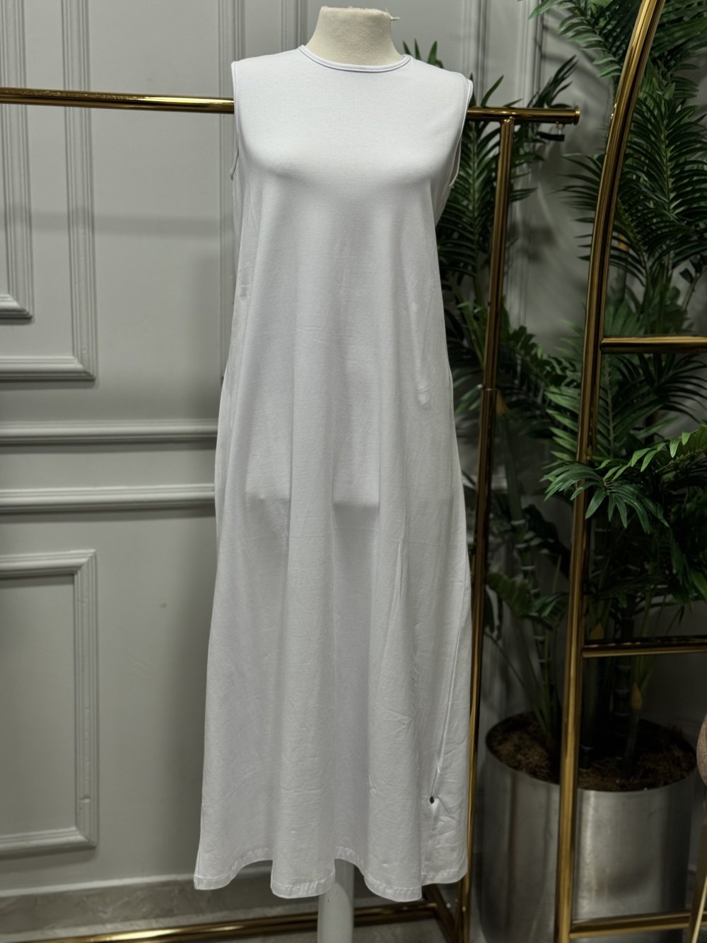 2884 Sıfır Kol Uzun İçlik Beyaz