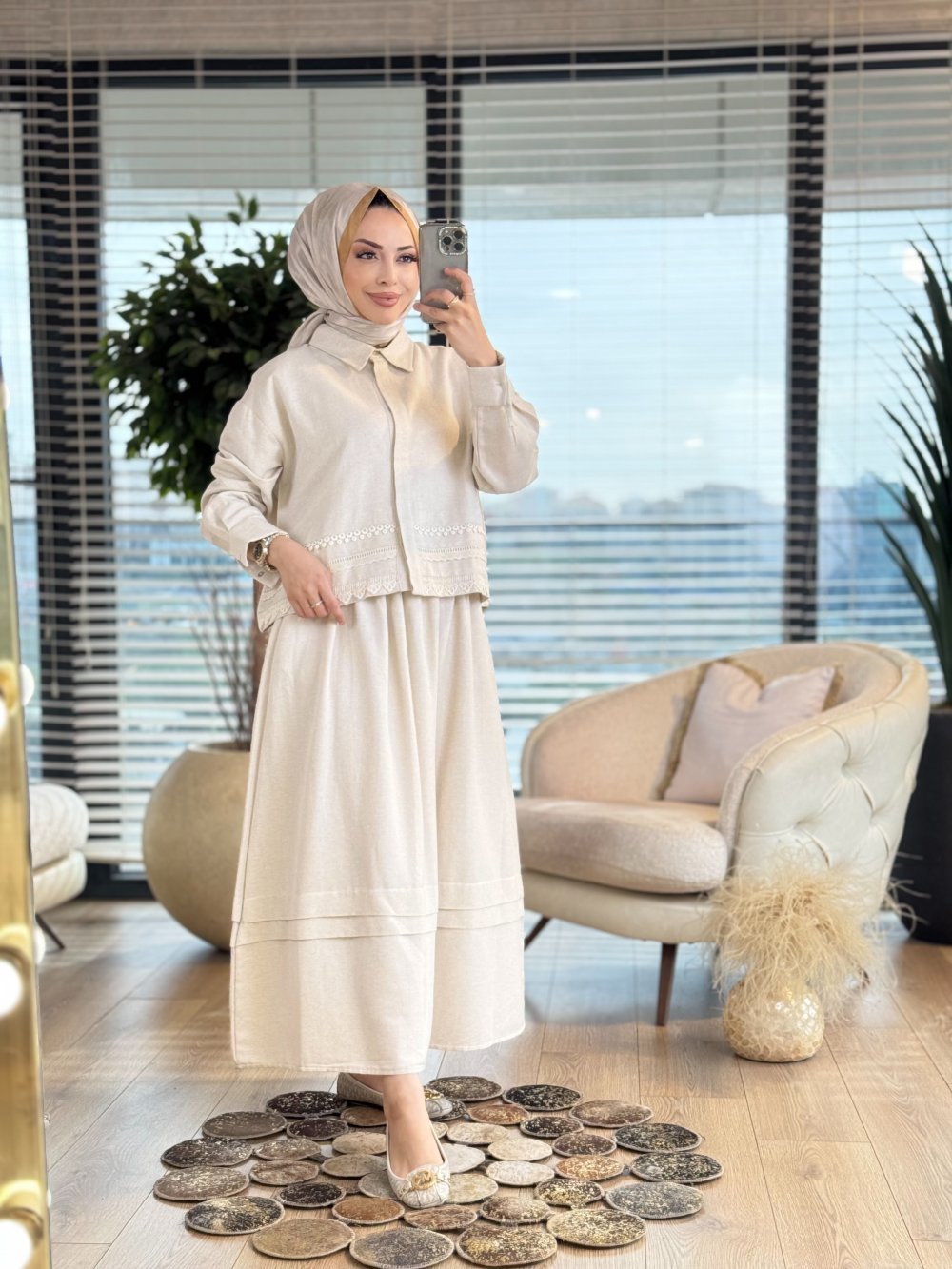 2904 Fisto Detaylı Etekli Takım Bej