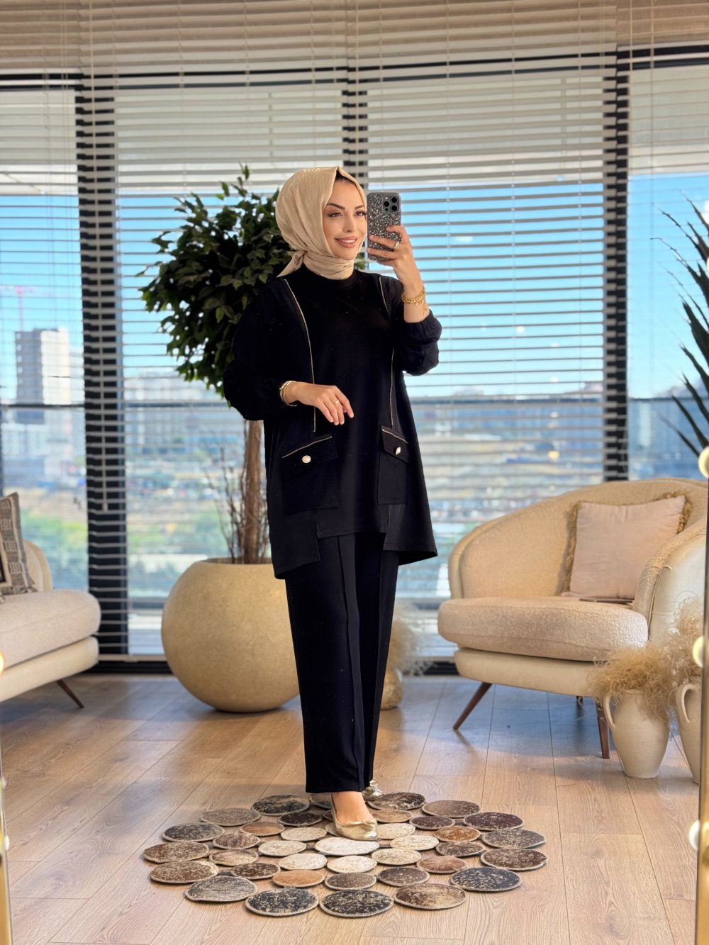 3042 Önü Fermuar Aksesuarlı Takım Siyah