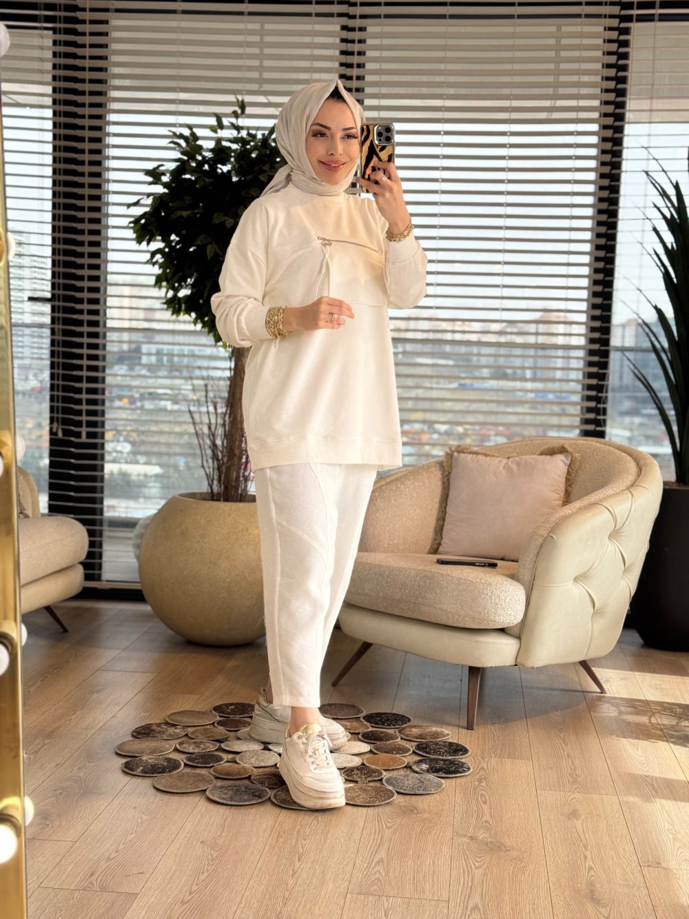3051 Cebi Fermuar Detaylı Sweatshırt Ekru