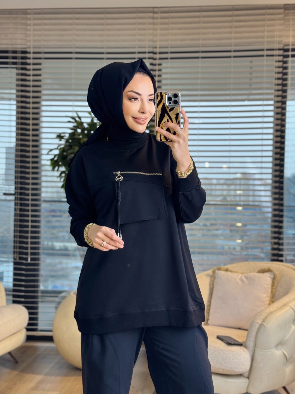 3051 Cebi Fermuar Detaylı Sweatshırt Siyah