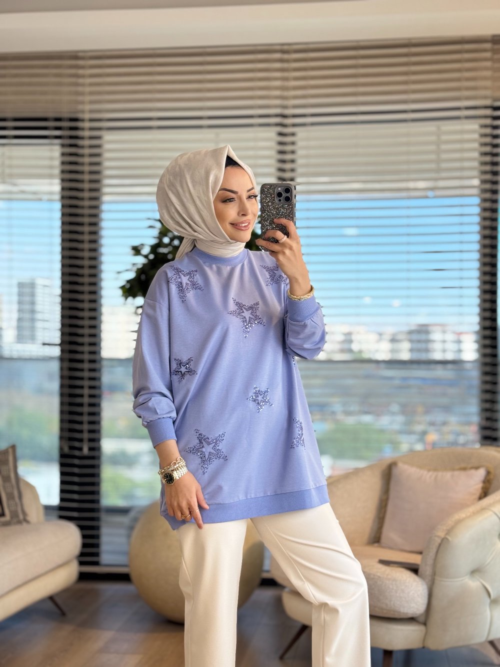3052 Yıldız Motifli SweatShirt Bebe Mavi
