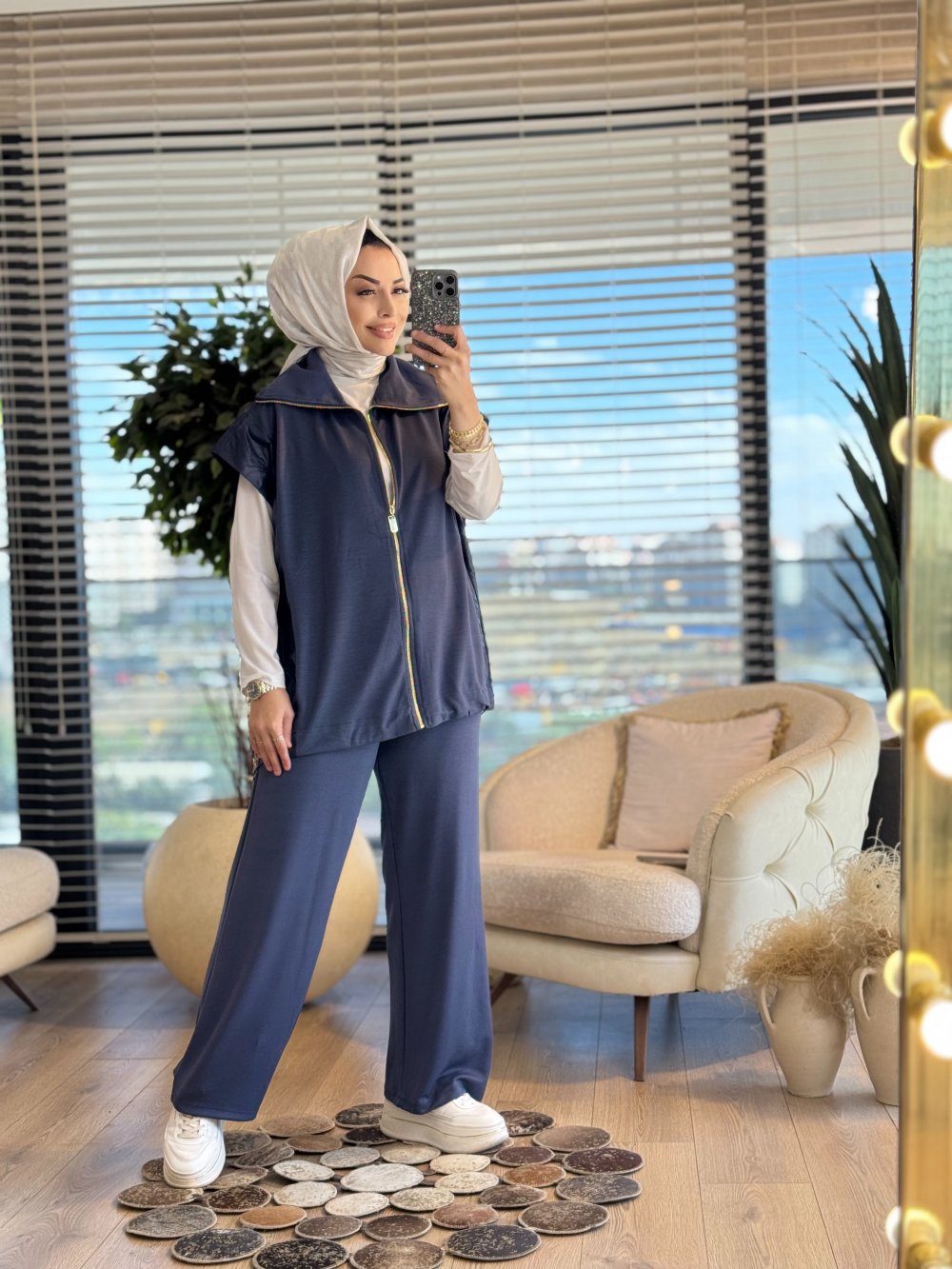 3063 Garni Detaylı Yelekli Takım Antrasit