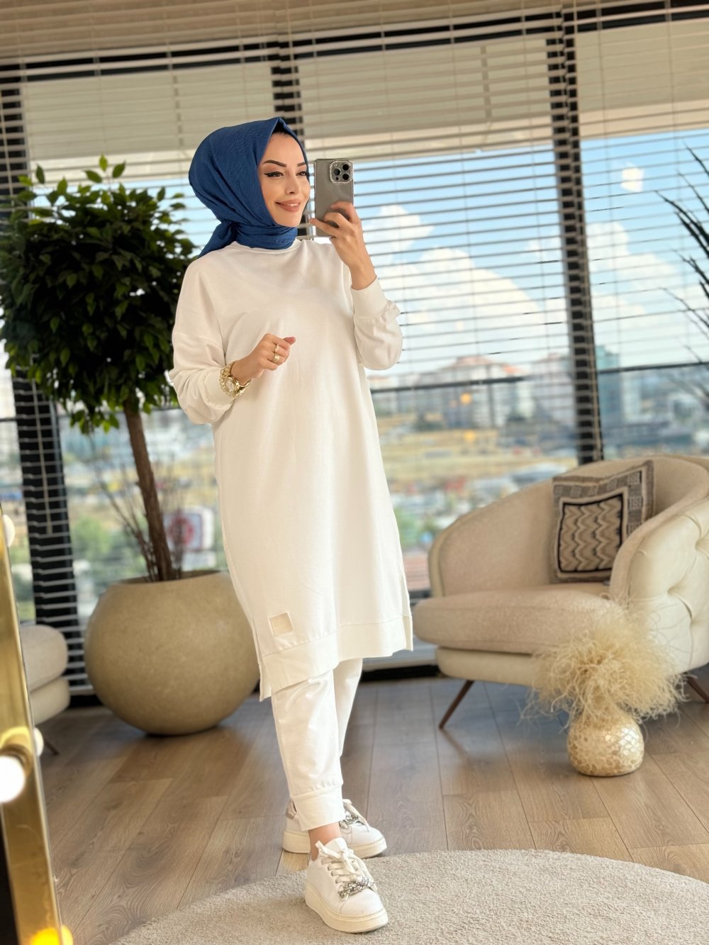 30645 Uzun Sıfır Yaka Tunik Ekru