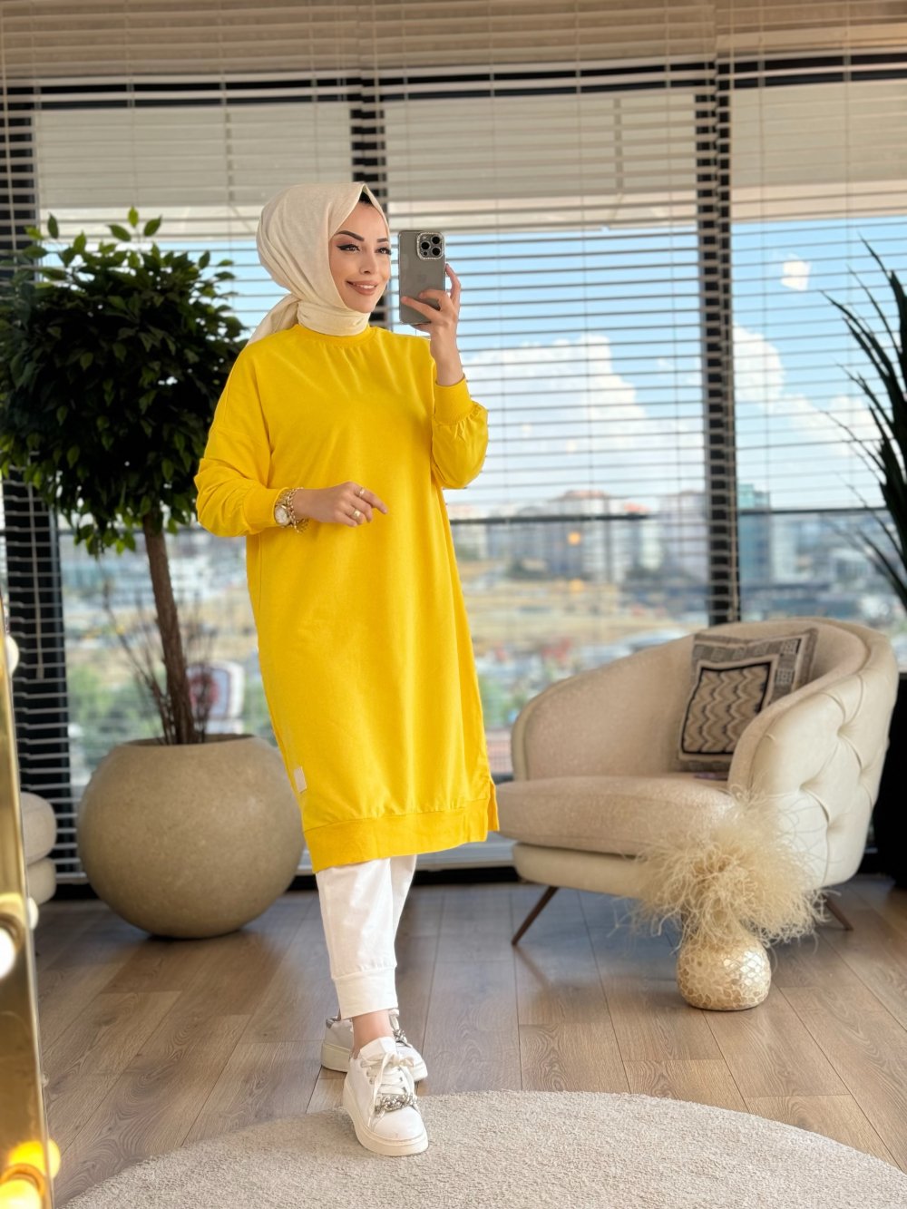 30645 Uzun Sıfır Yaka Tunik Sarı