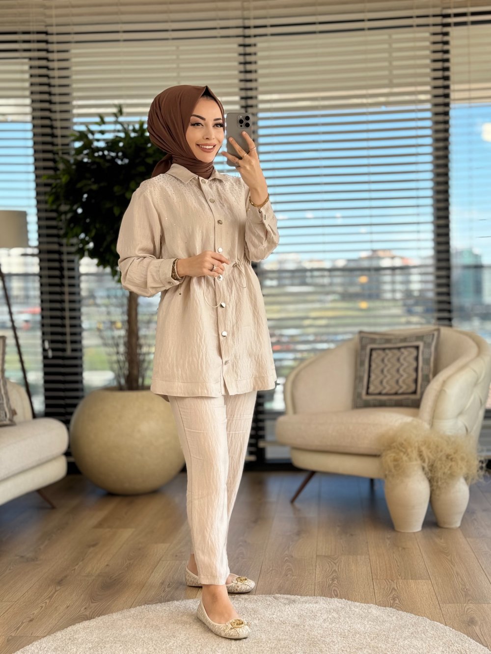 30771 Ön Taşlı Çıtçıtlı Takım Bej