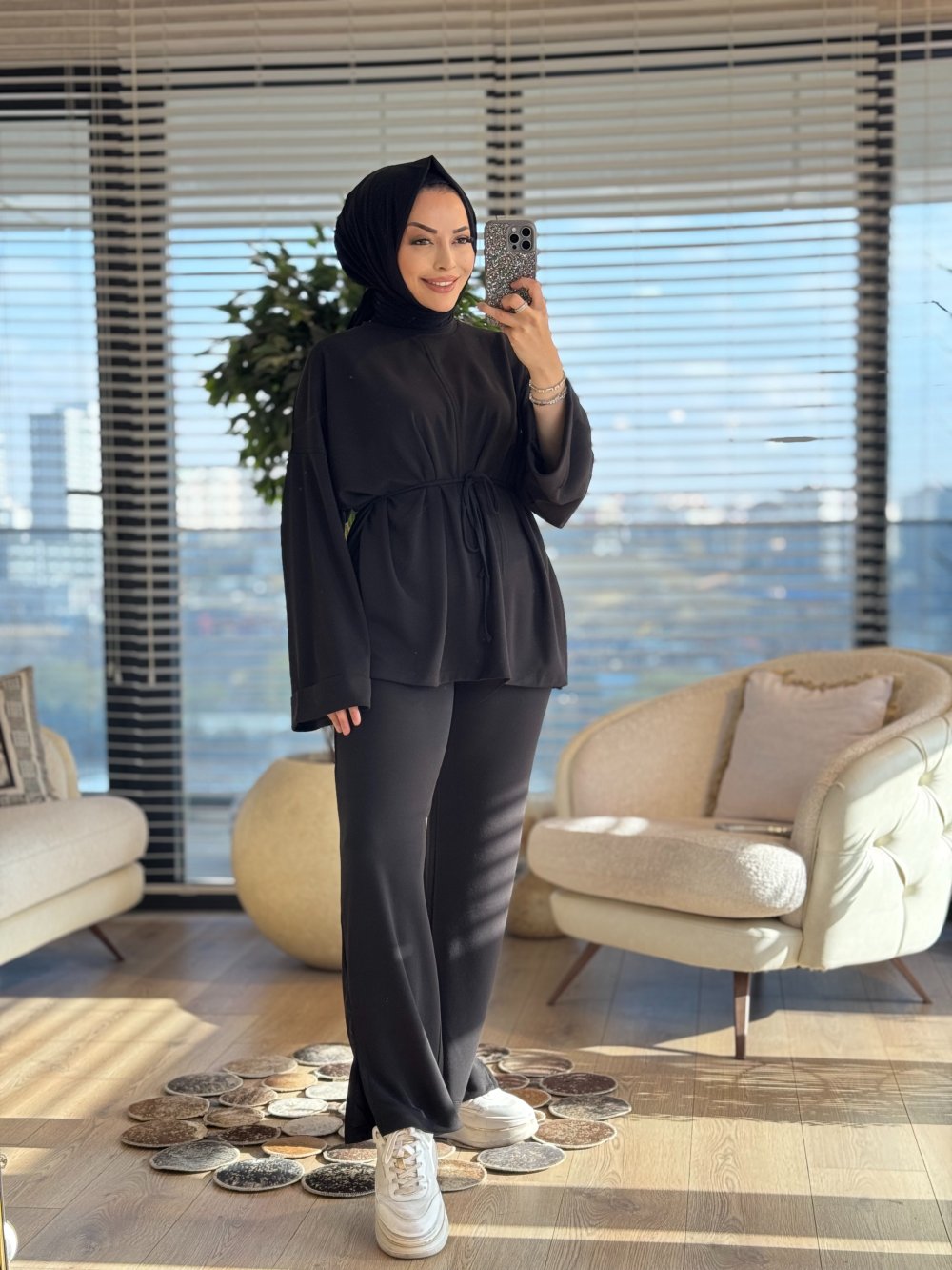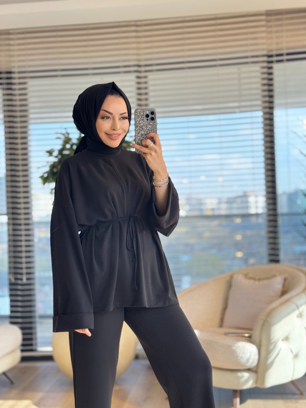 3179 Dikiş Ve Yırtmaç Detaylı Takım Siyah