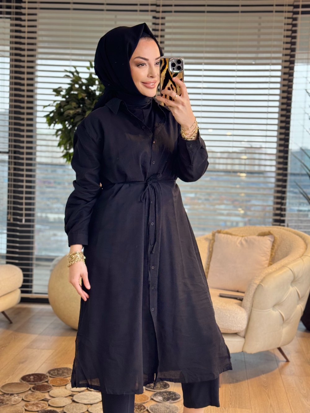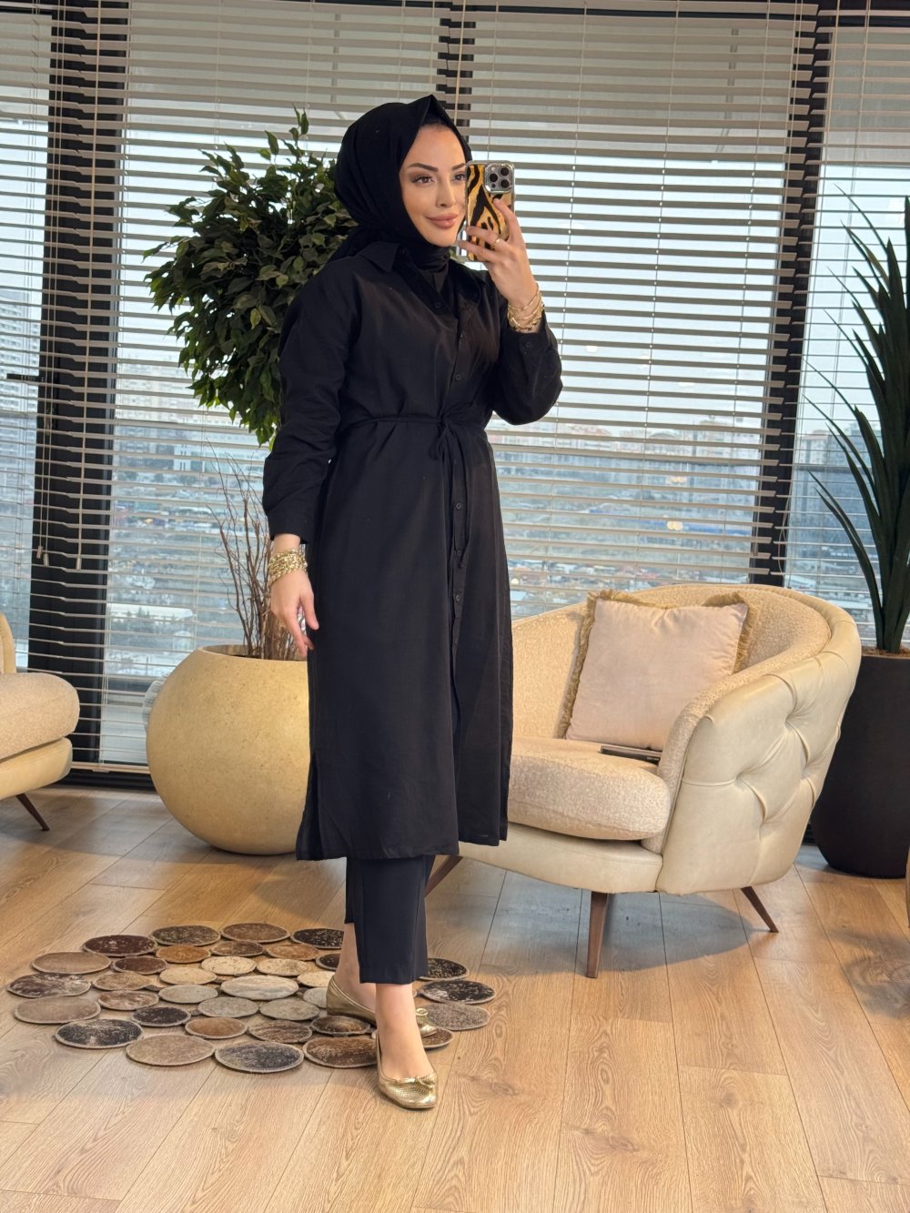 3204 Yırtmaçlı Midi Boy Gömlek Siyah