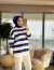 32107 Enine Kalın Çizgili Üç İplik Sweat Oranj