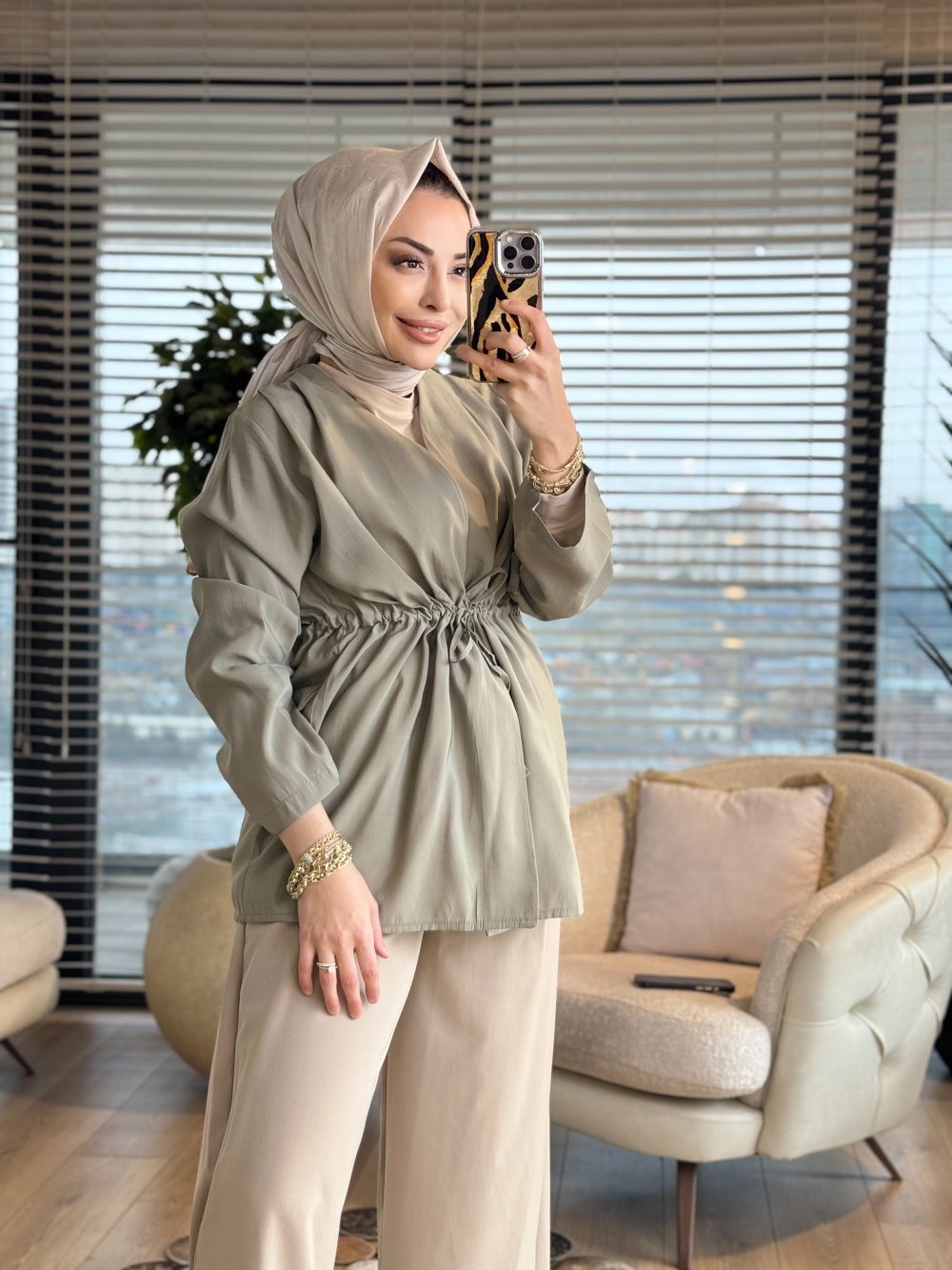 3224 Omzu Pile Detaylı Ceket Haki