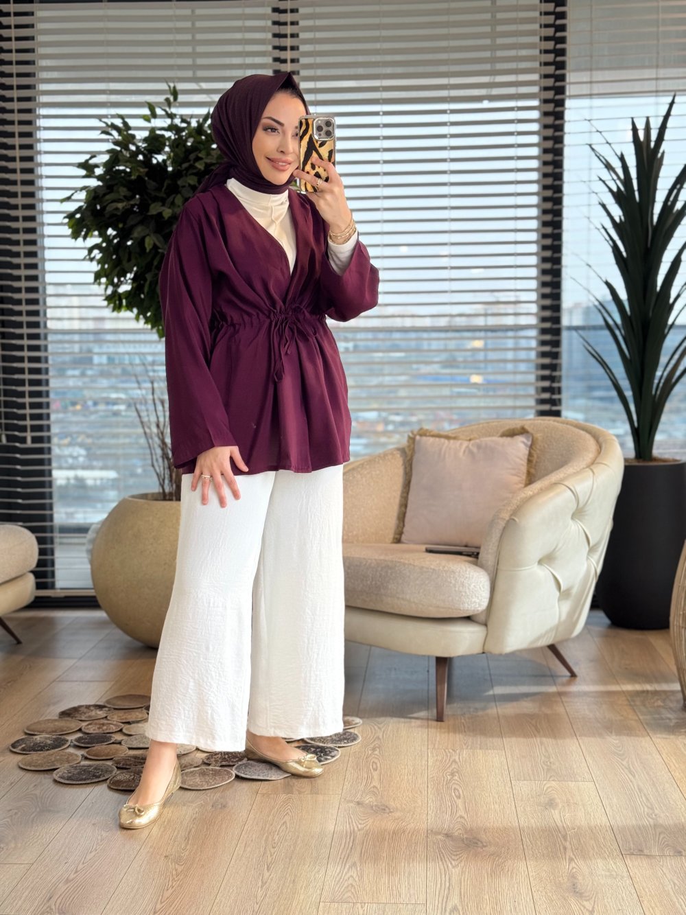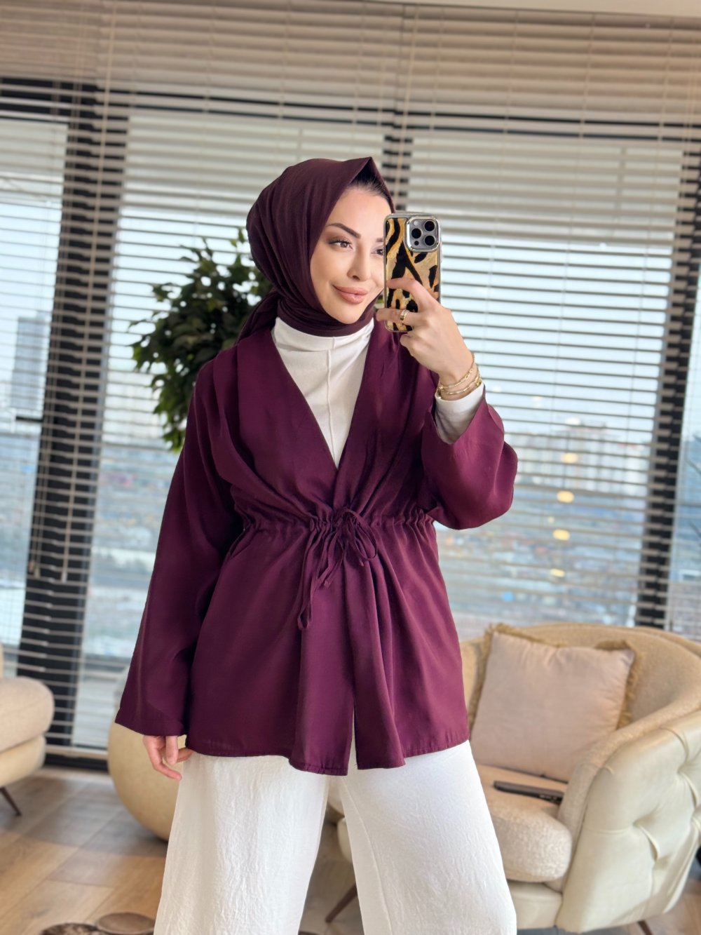 3224 Omzu Pile Detaylı Ceket Mürdüm
