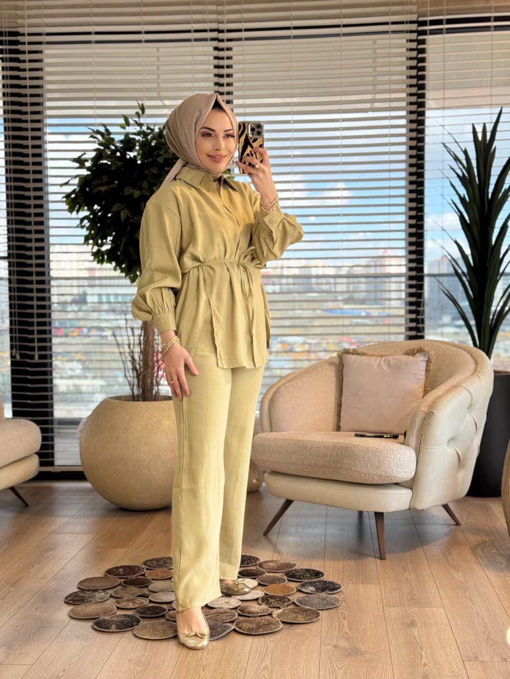 3230 Yırtmaç Detaylı Takım Yağ Yeşili
