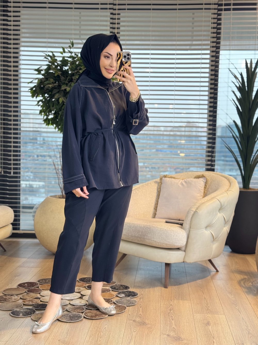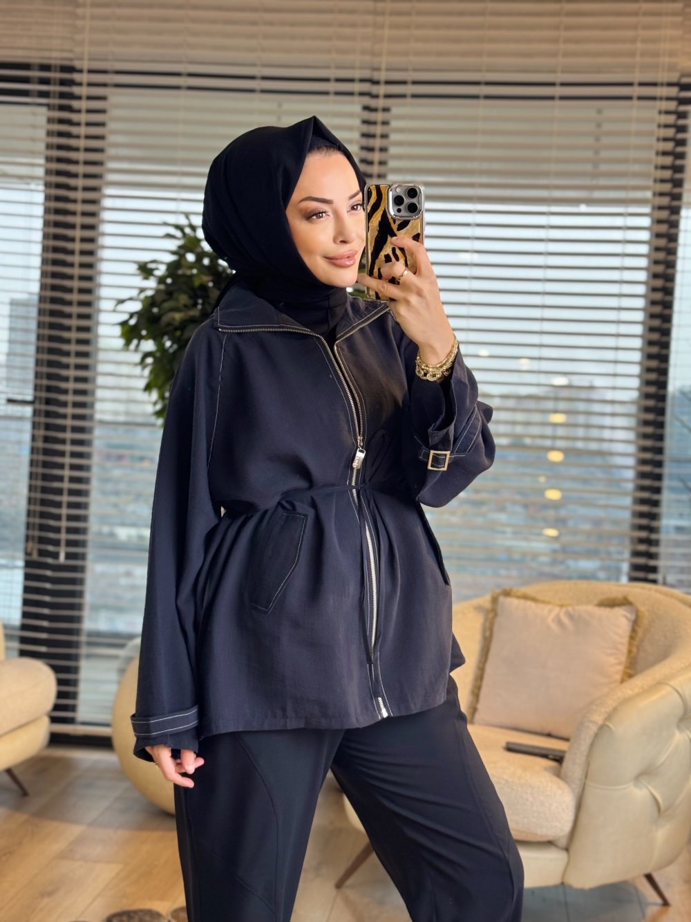 3238 Apolet Detaylı Fermuarlı Ceket Siyah