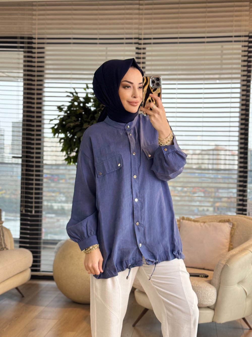 3241 Cep Detaylı Bağcıklı Kap Lacivert
