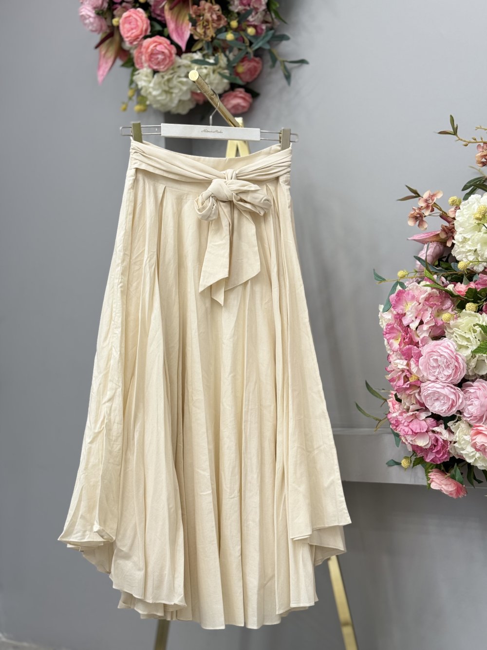 32420 Kırışık Beli Kuşaklı Etek Bej