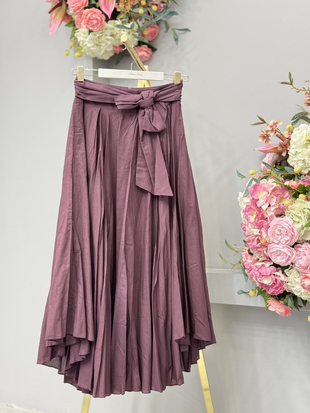 32420 Kırışık Beli Kuşaklı Etek Mürdüm