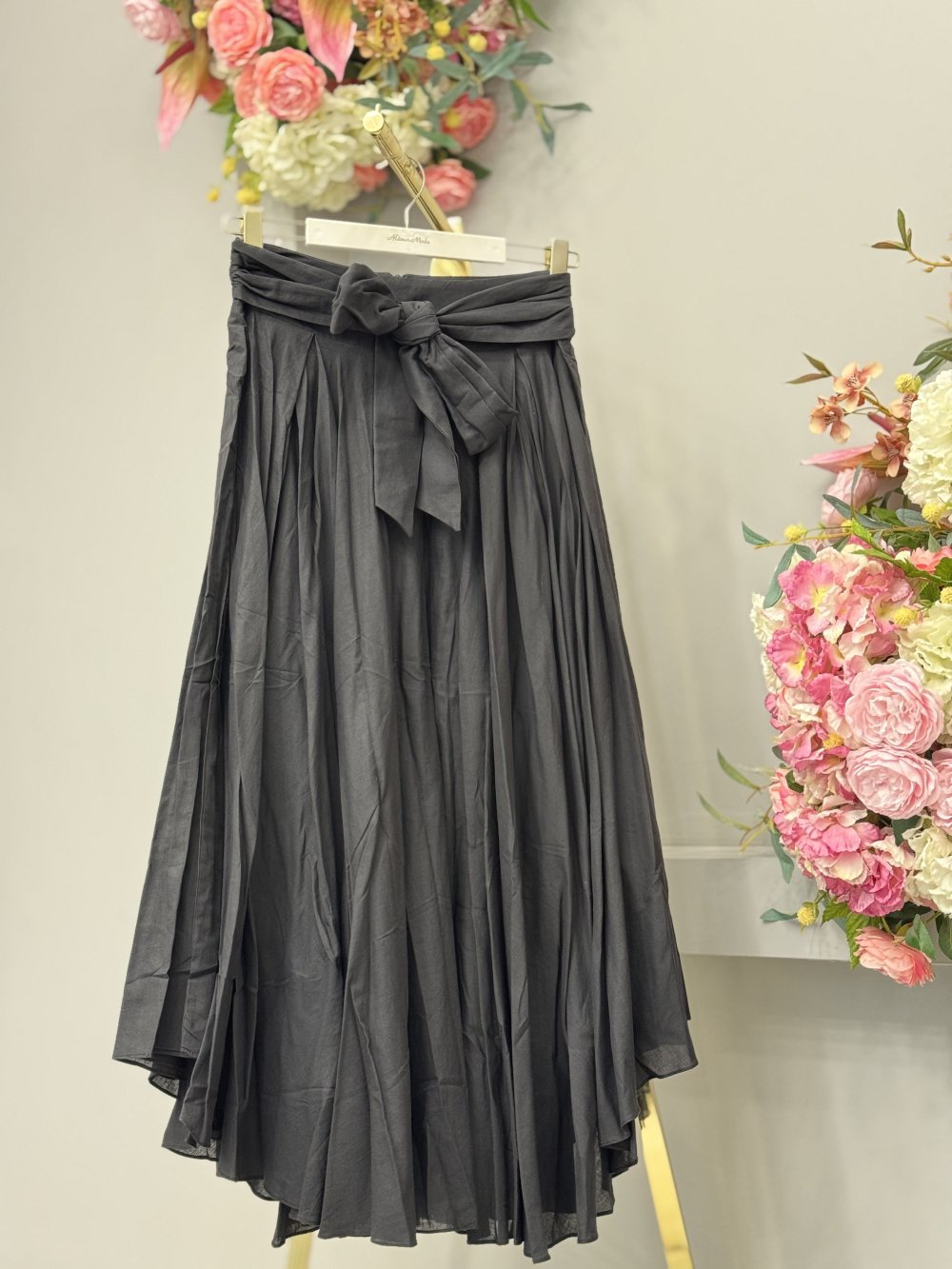 32420 Kırışık Beli Kuşaklı Etek Siyah