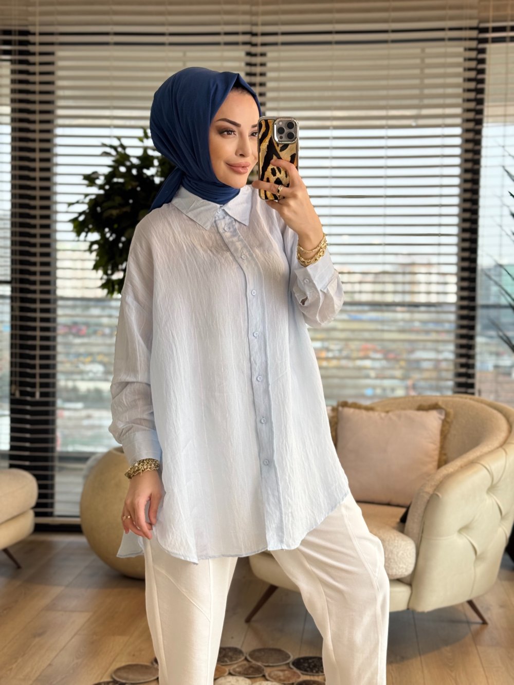 3259 Vual Çizgili Gömlek Mavi