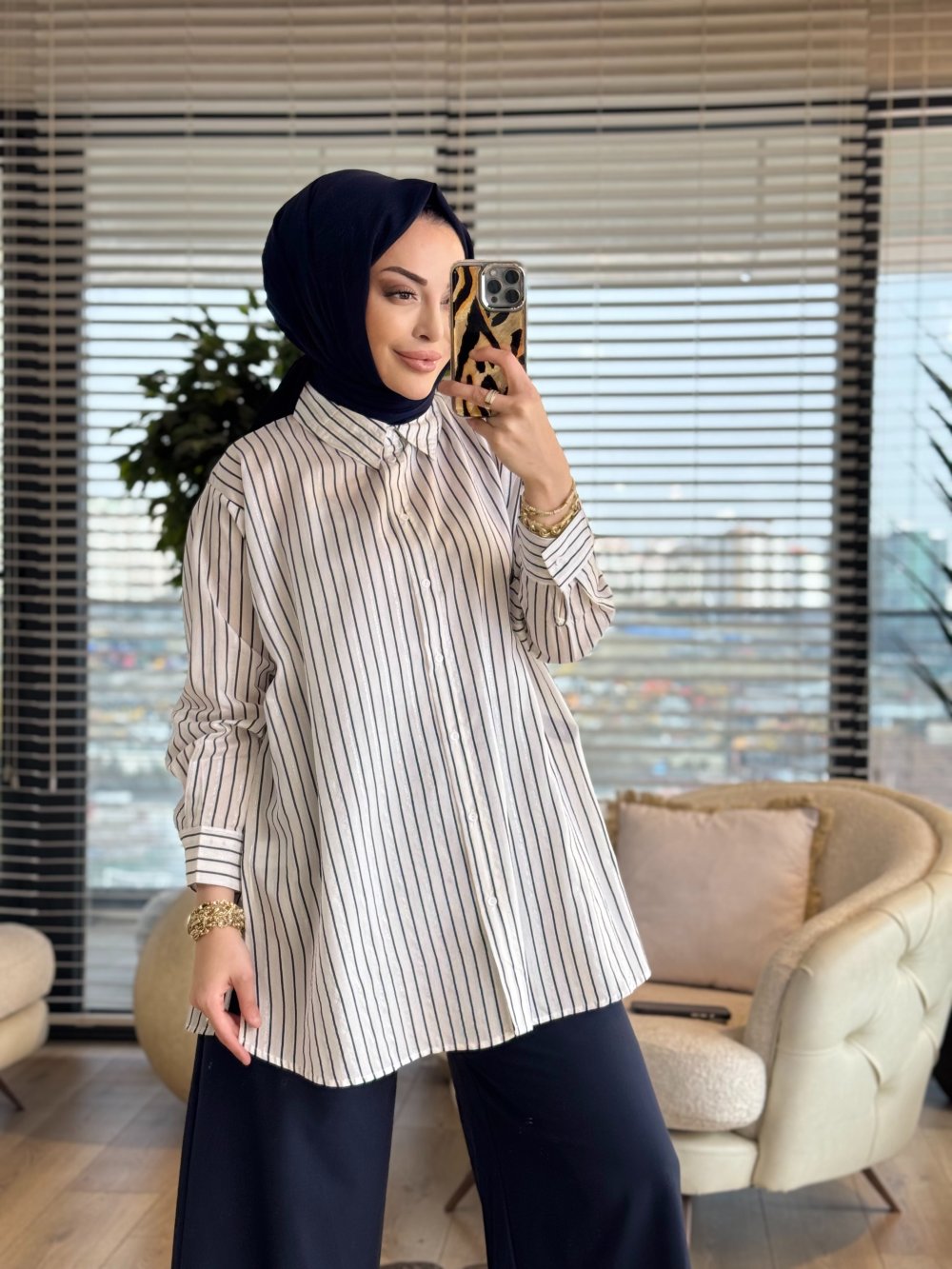 3294 Simli Çizgili Gömlek Beyaz