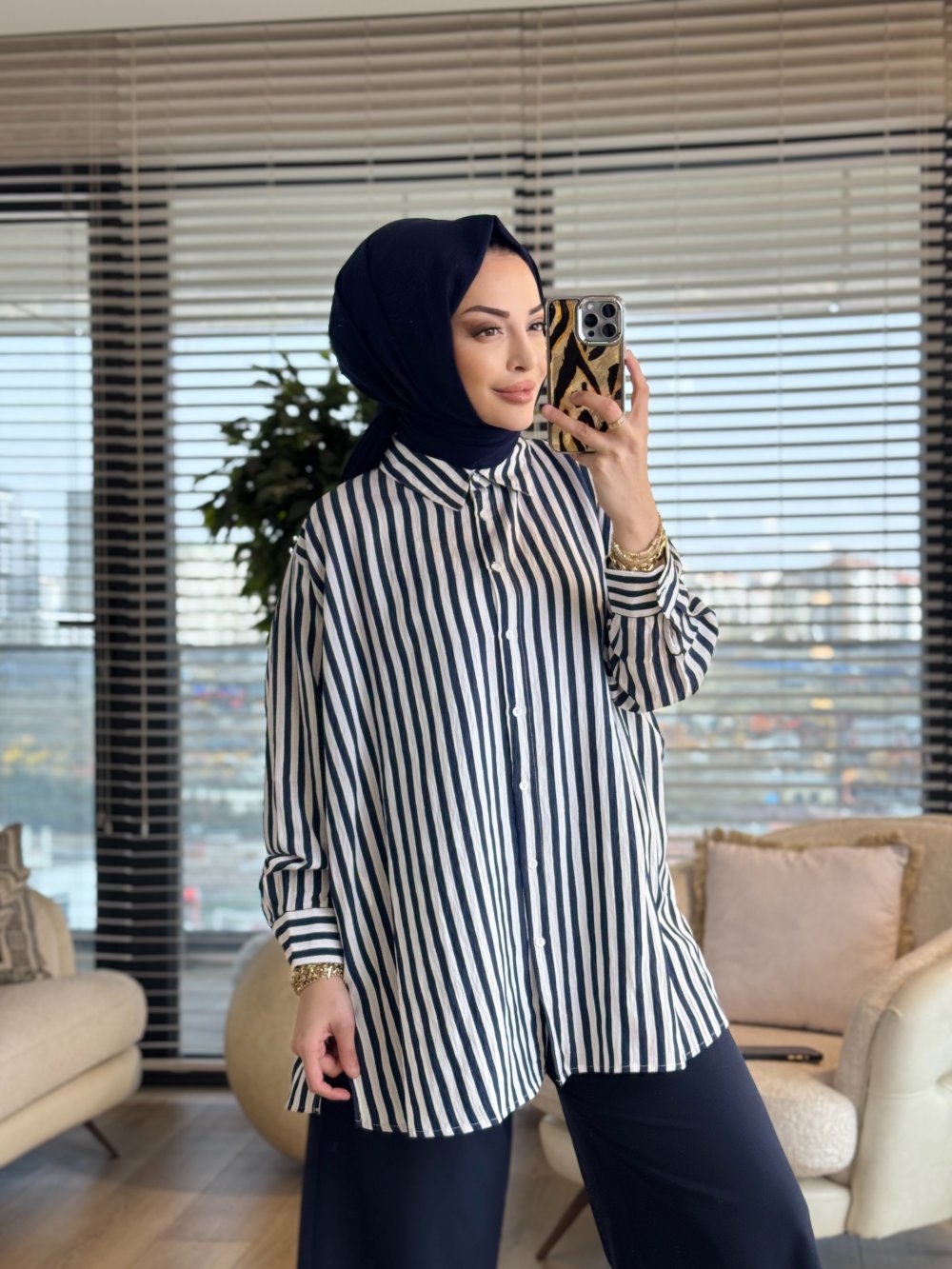 3311 Simli Kalın Çizgili Gömlek Lacivert
