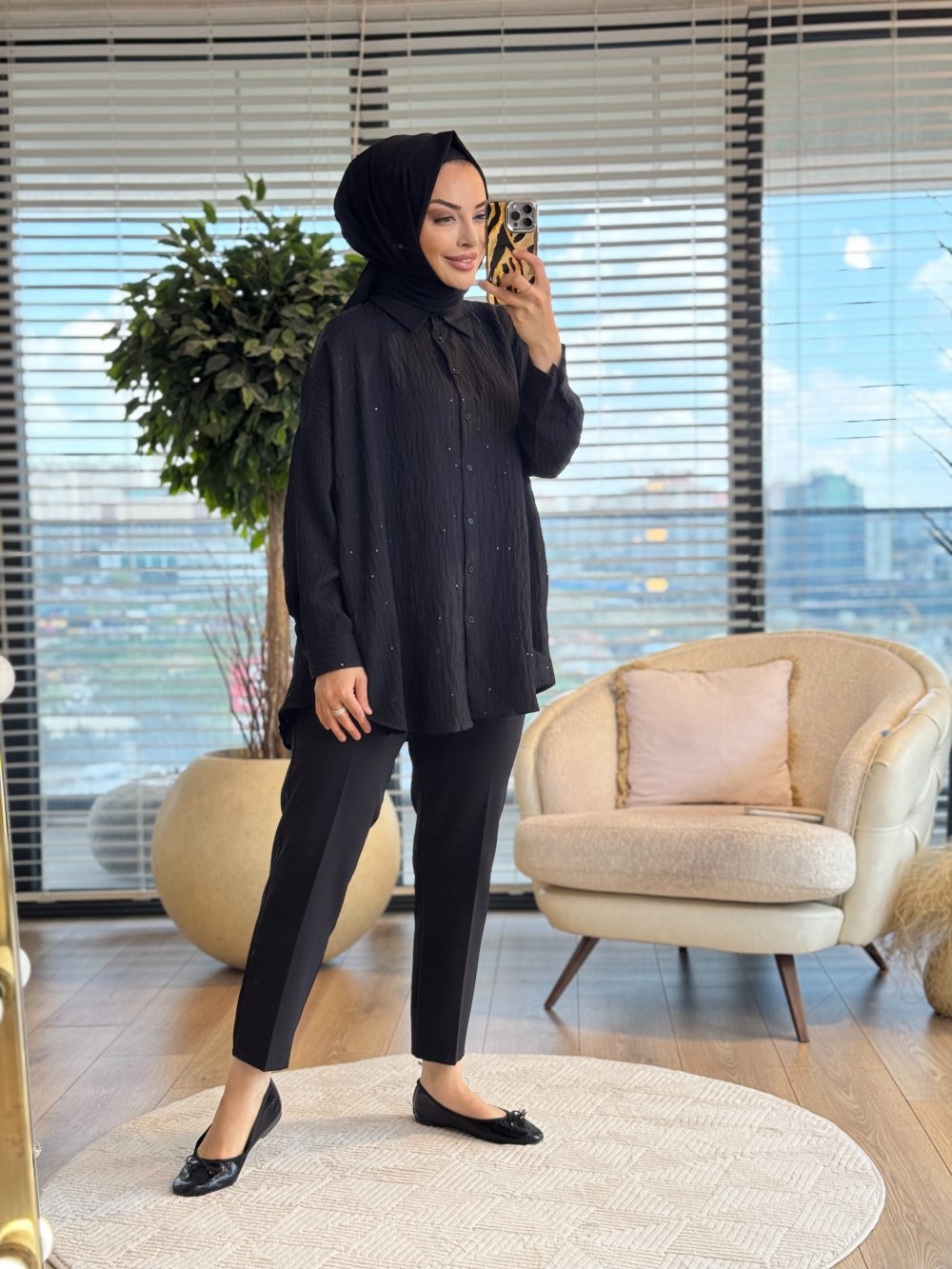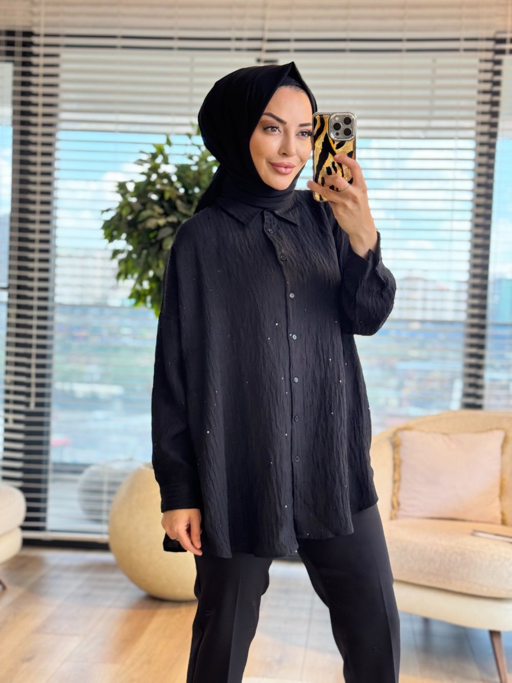 3344 Pul Detaylı Gömlek Siyah