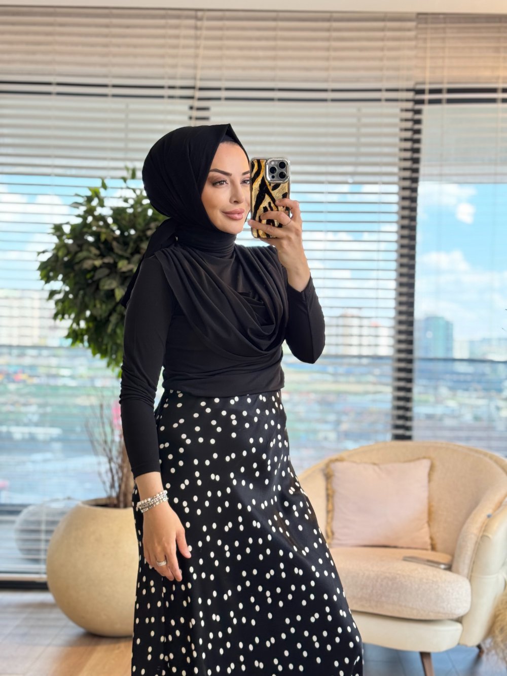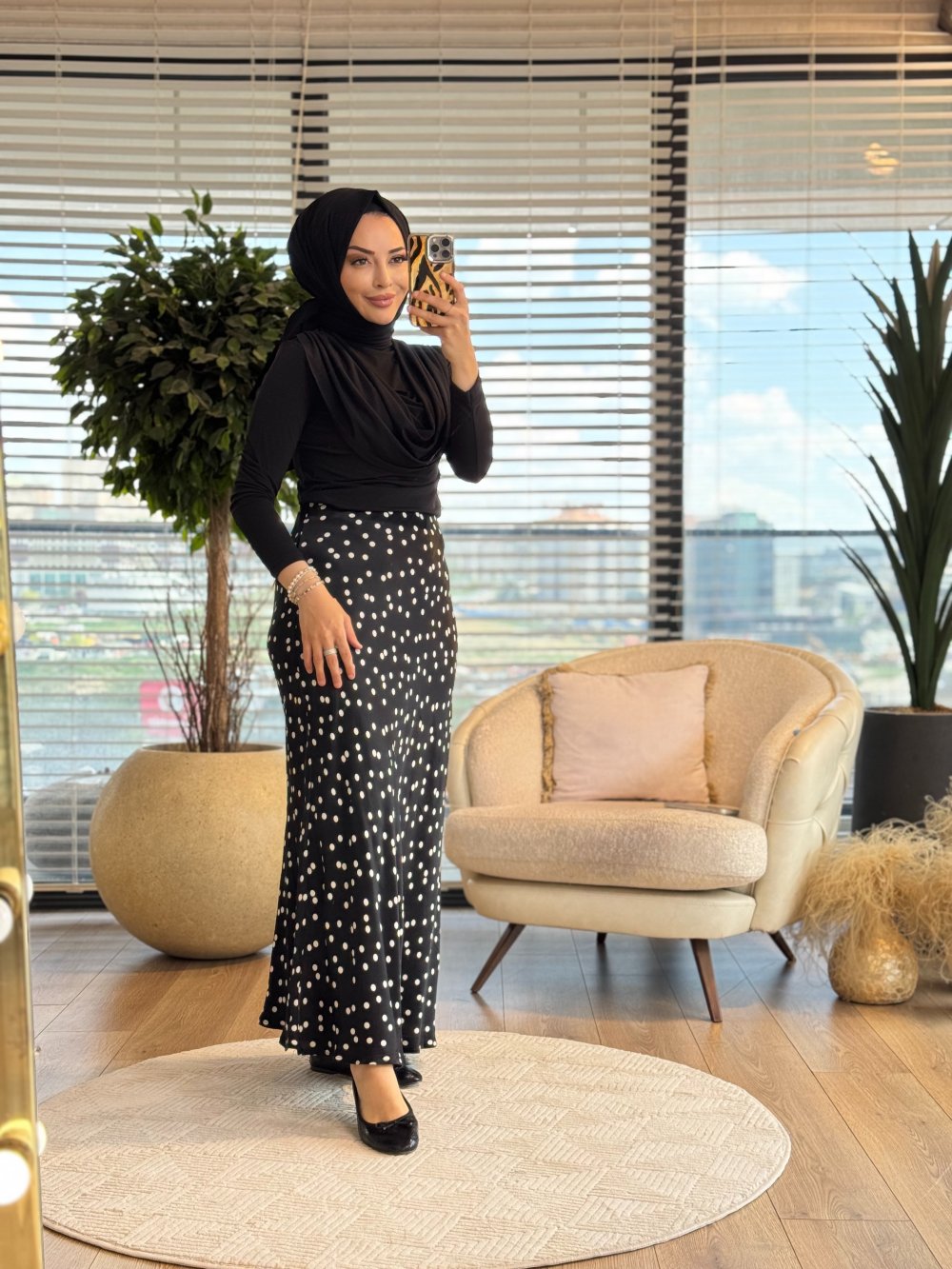 3411 Puantiye Saten Etek Siyah