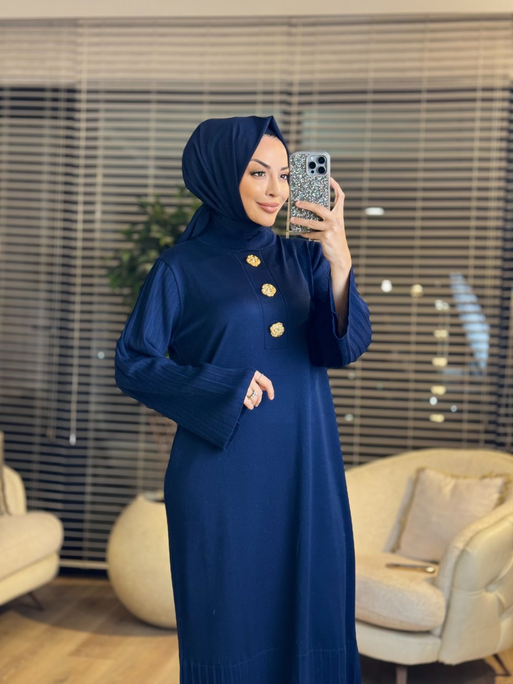 3507 Metal 3 Broşlu Triko Elbise Lacivert