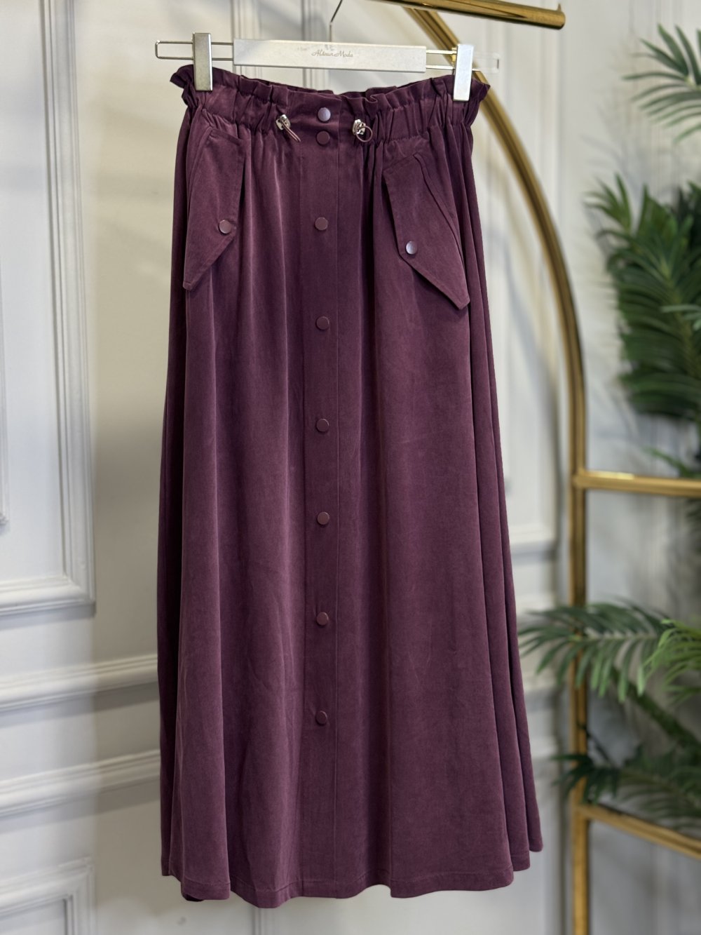 35081 Cepli Çıtçıtlı Modal Etek Bordo
