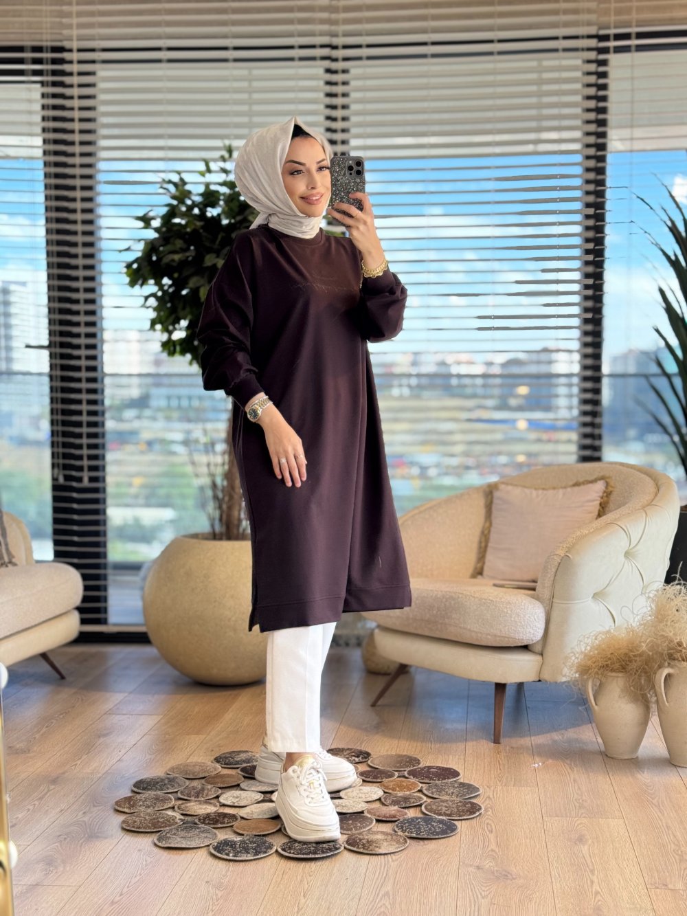 35331 Tonaton Baskılı Uzun Tunik Kahve