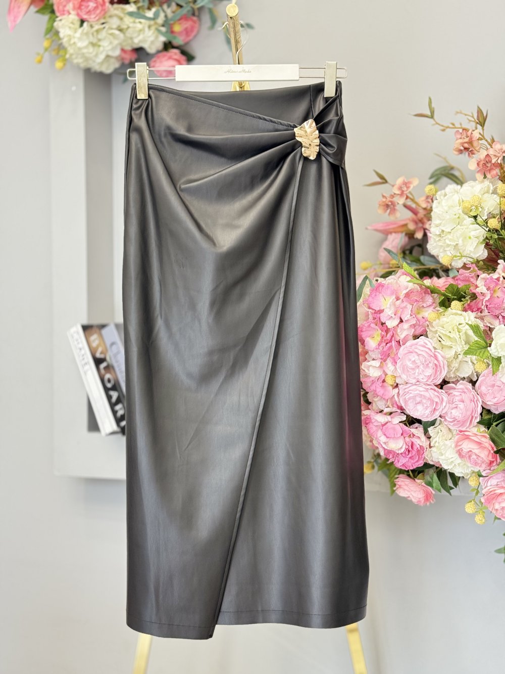 35932 Deri Metal Aksesuarlı Etek Siyah