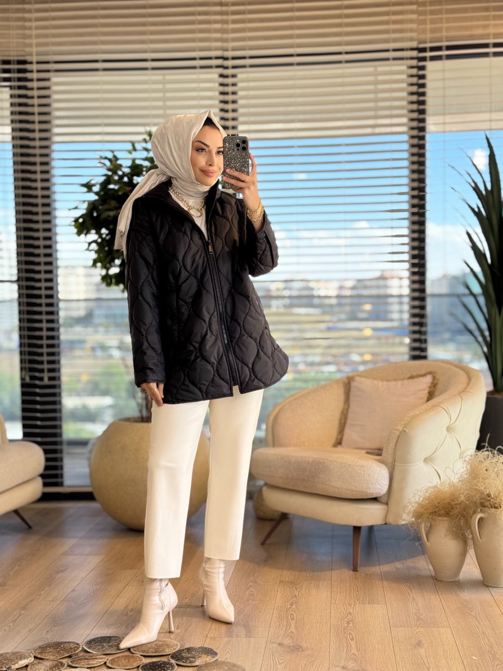 35424 Kapşonlu Şişme Mont Siyah