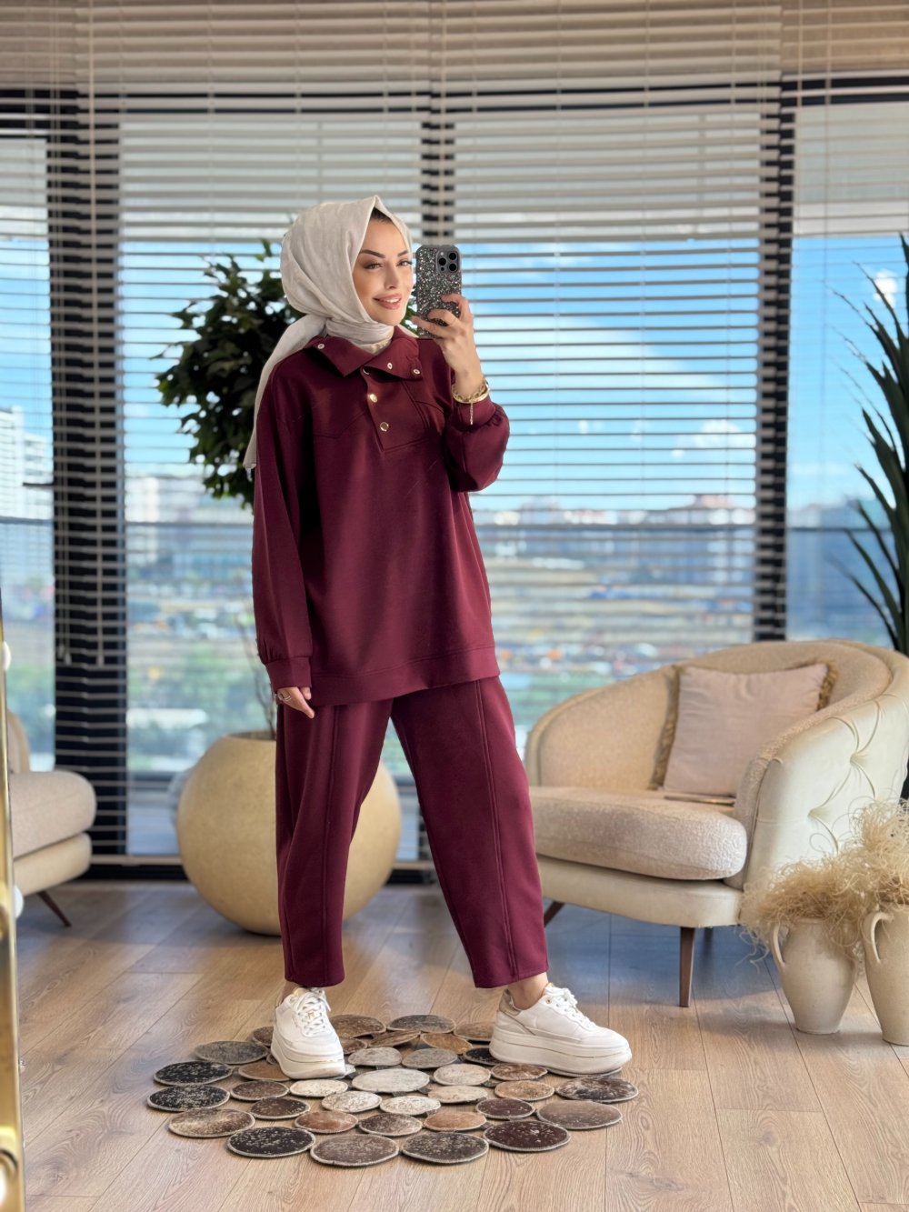 35792 Çıtçıtlı Yüksek Yakalı Takım Bordo