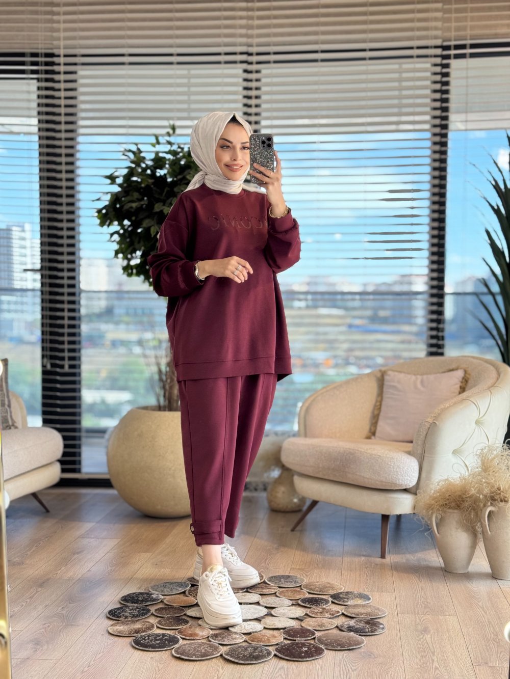 35797 Taş Ve Yüksek Baskılı Takım Bordo
