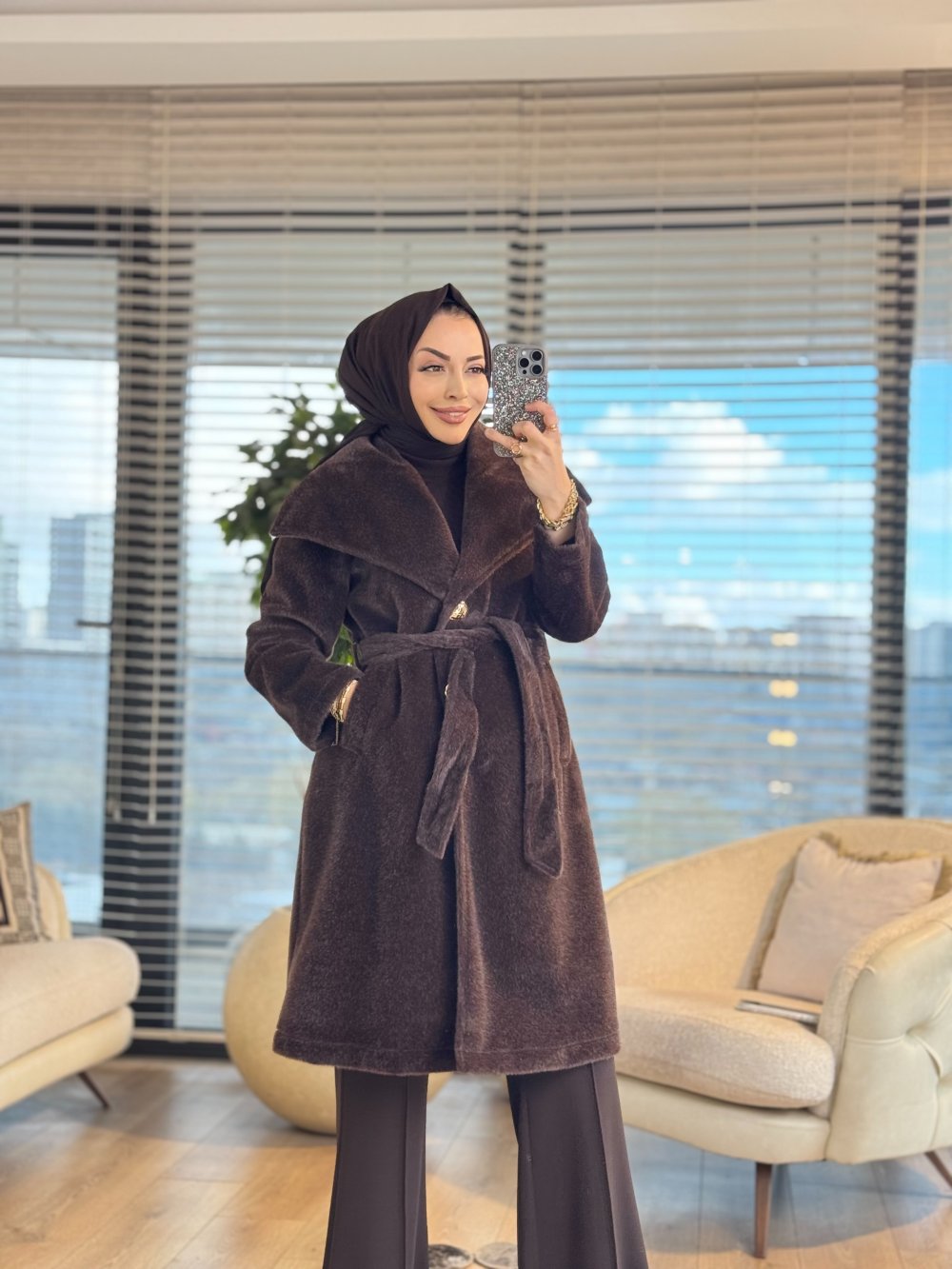 36234 Geniş Yakalı Düğmeli Kaban Kahve