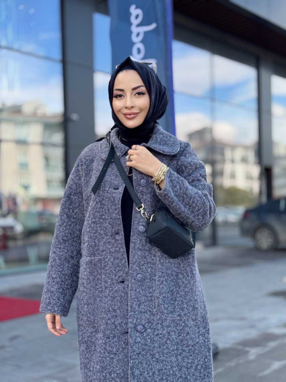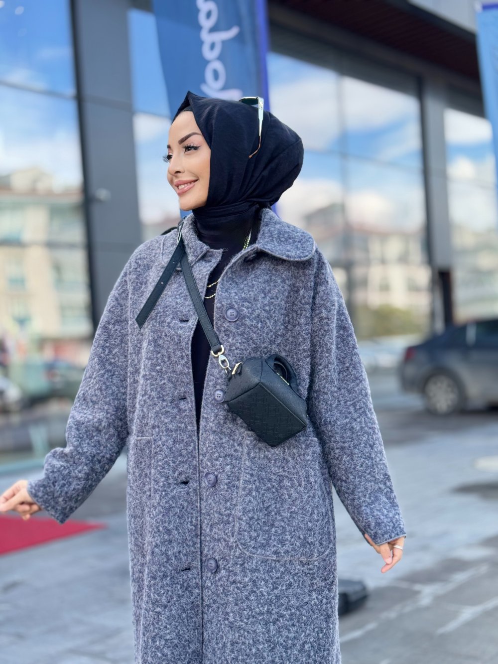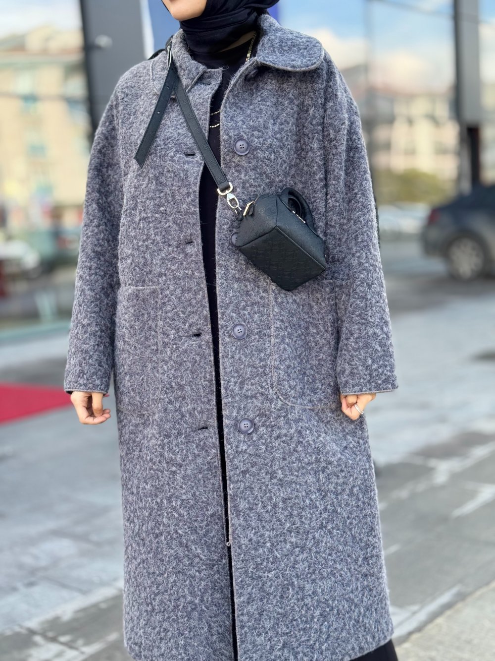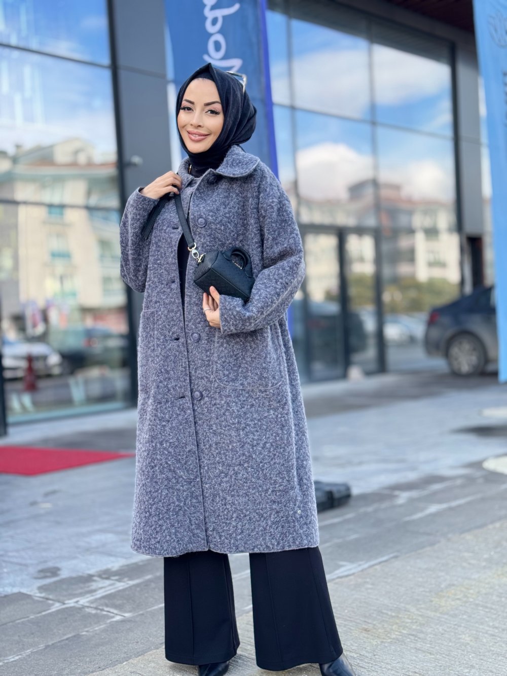 36638 Melanjlı Kaşe Bukle Kaban Antrasit