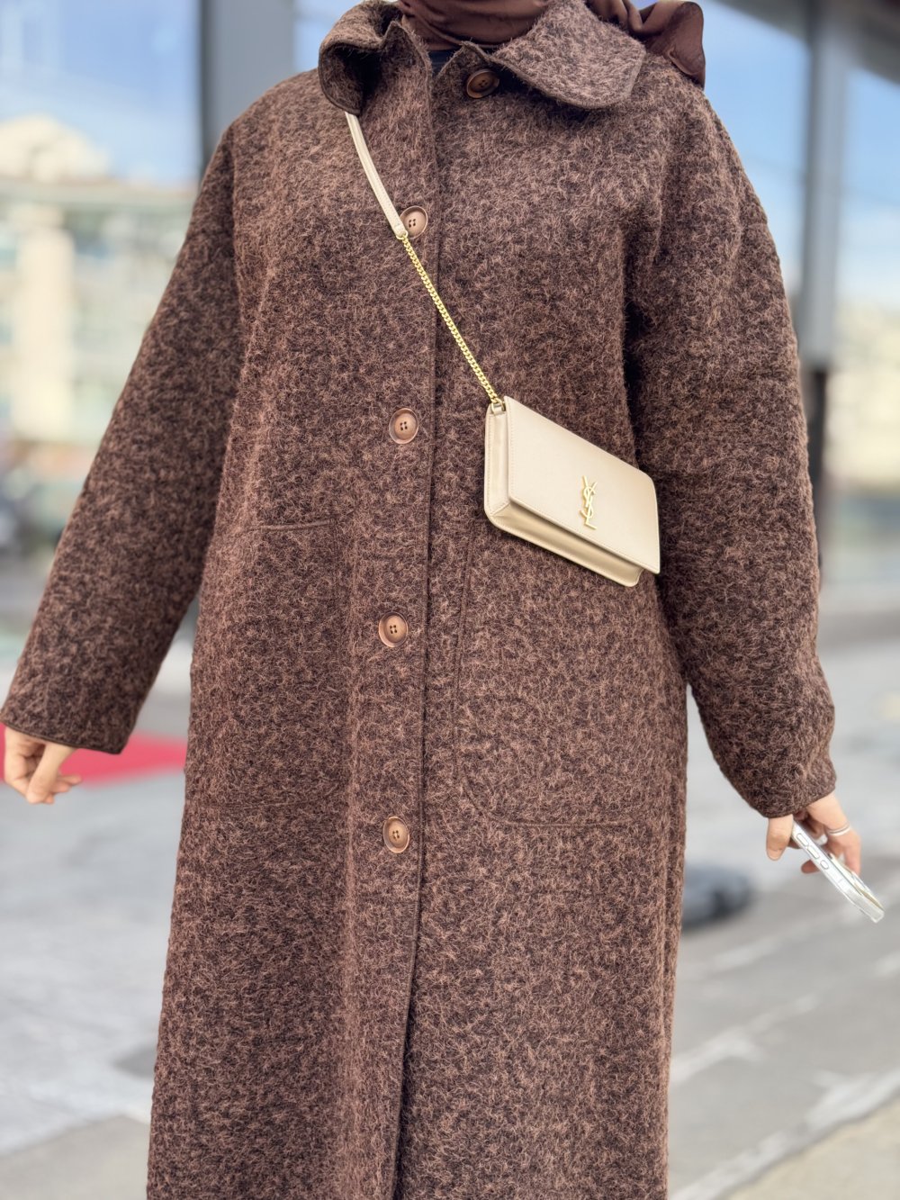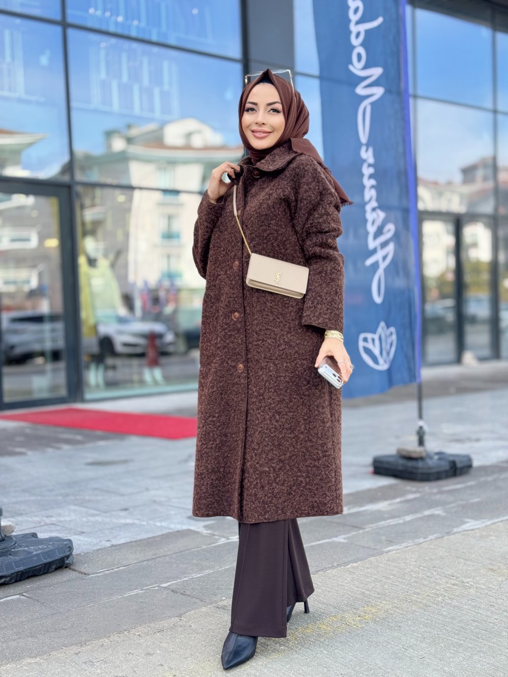 36638 Melanjlı Kaşe Bukle Kaban Kahve