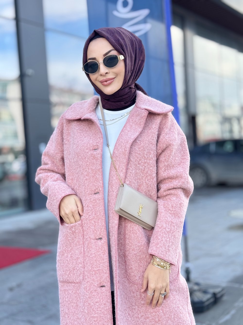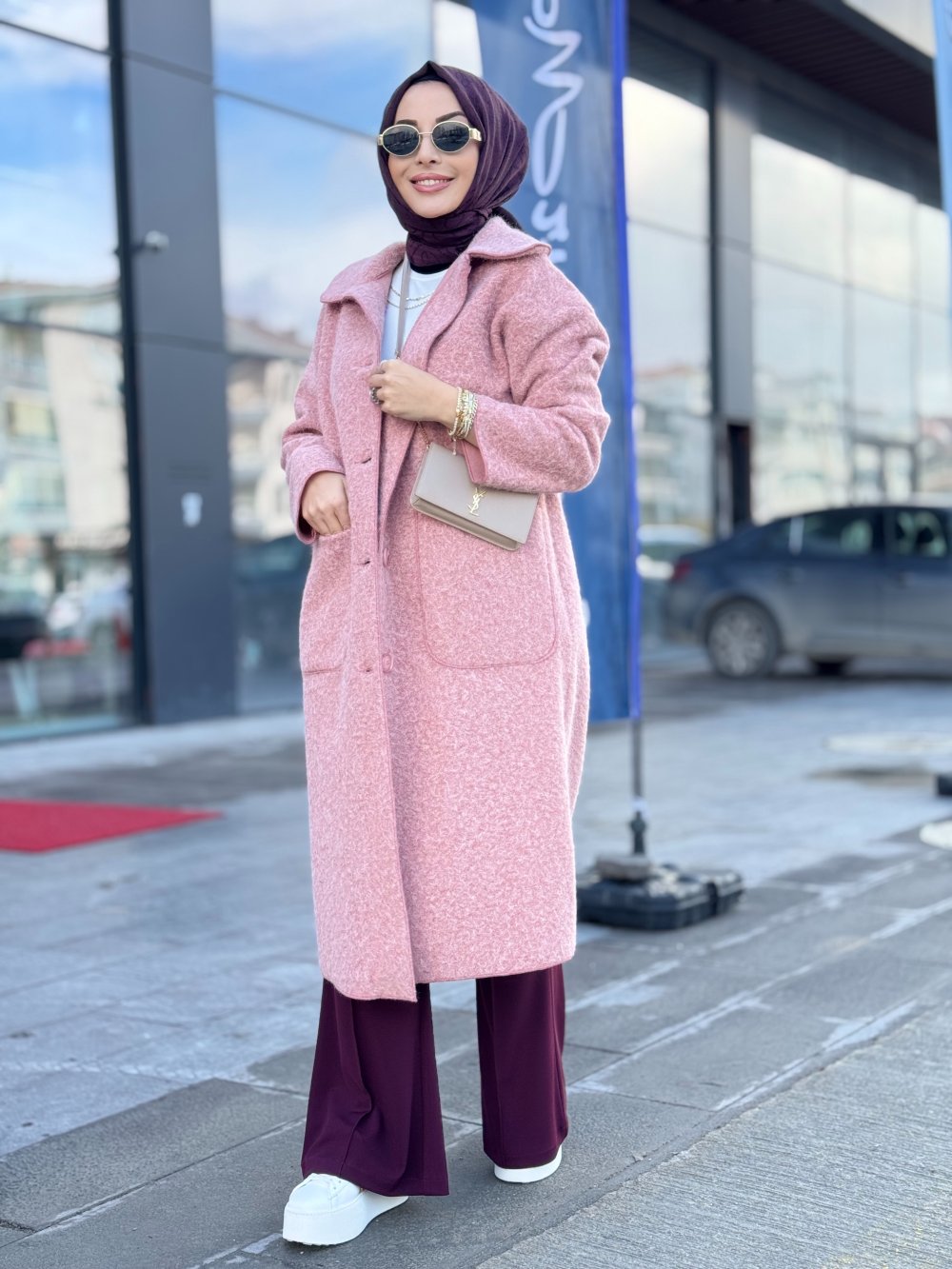 36638 Melanjlı Kaşe Bukle Kaban Pembe
