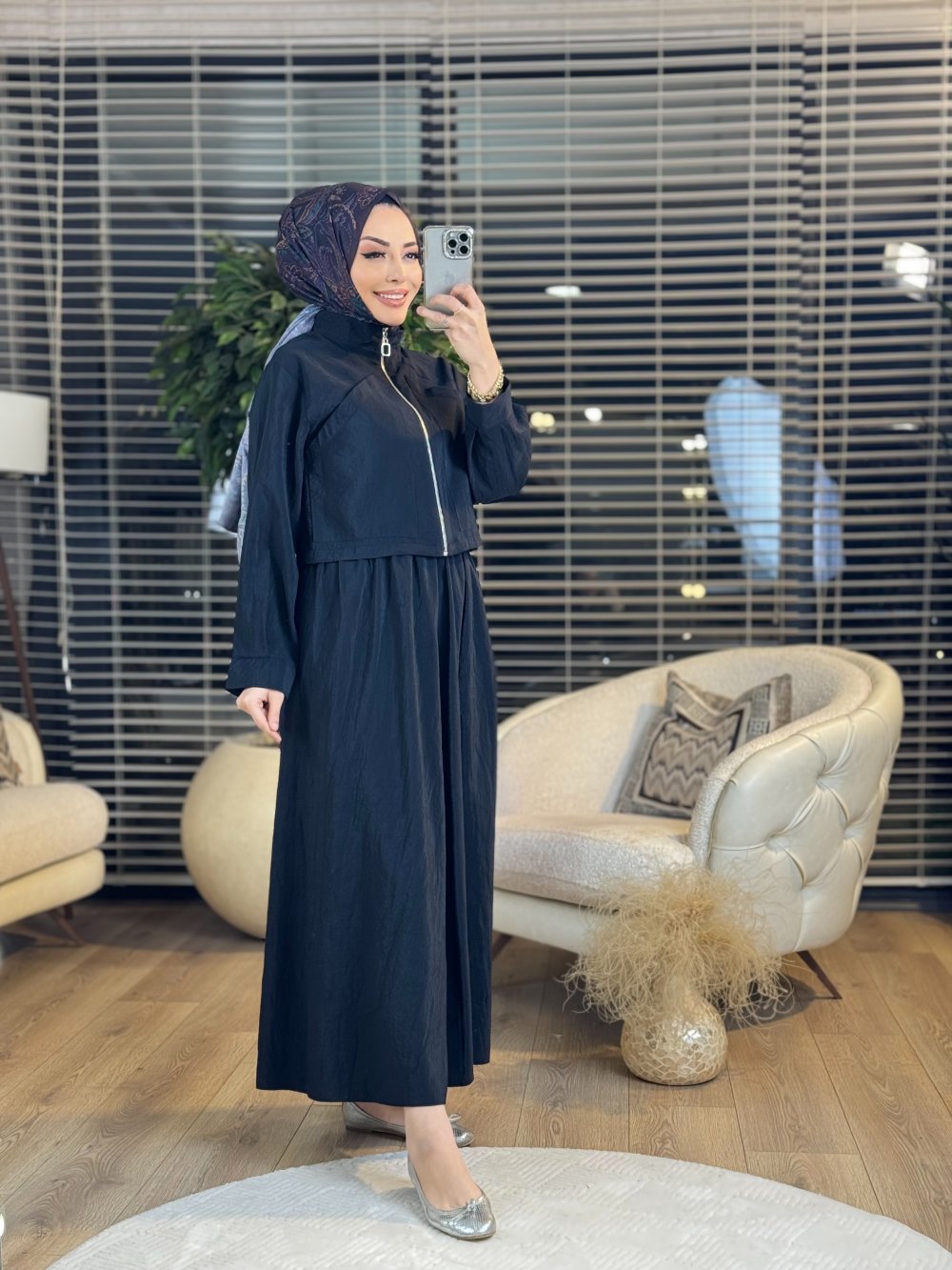 22763 Biye Detaylı Önü Fermuarlı Takım Siyah