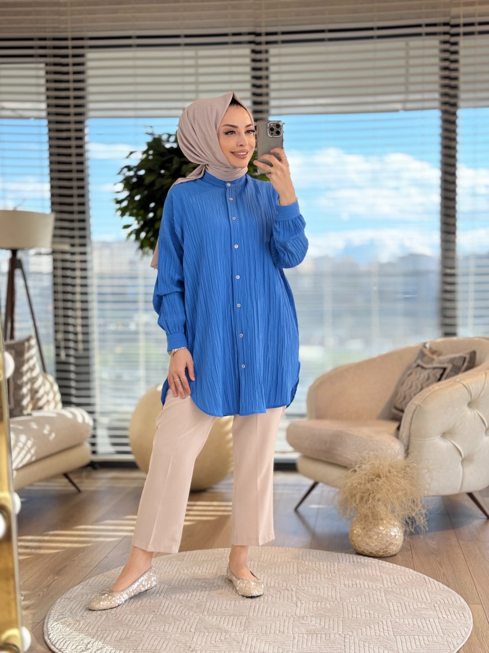 30645 Uzun Sıfır Yaka Tunik Ekru